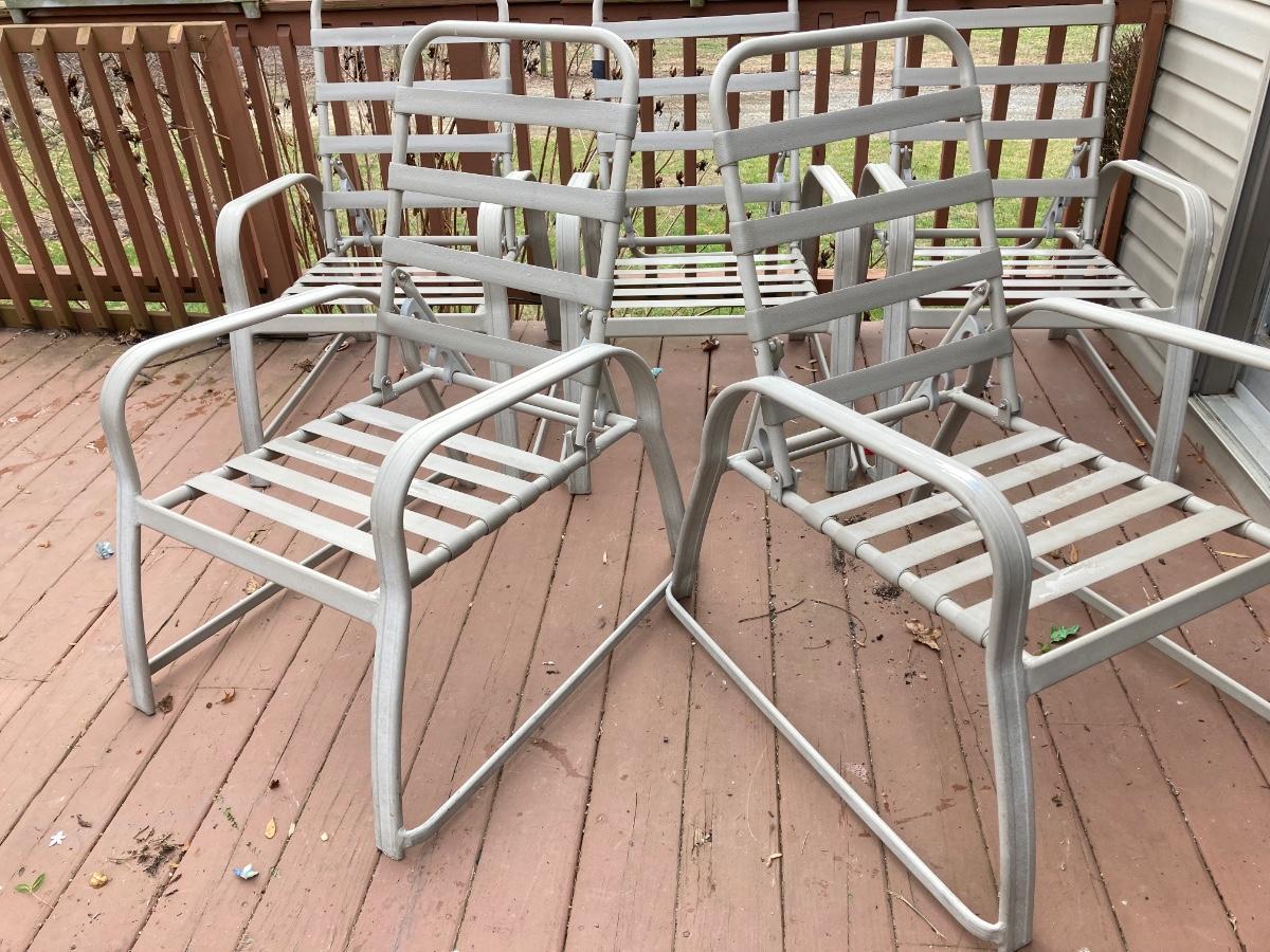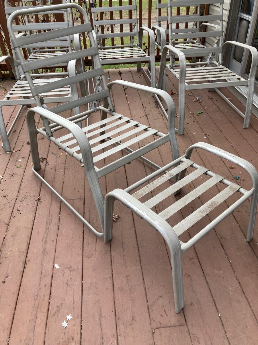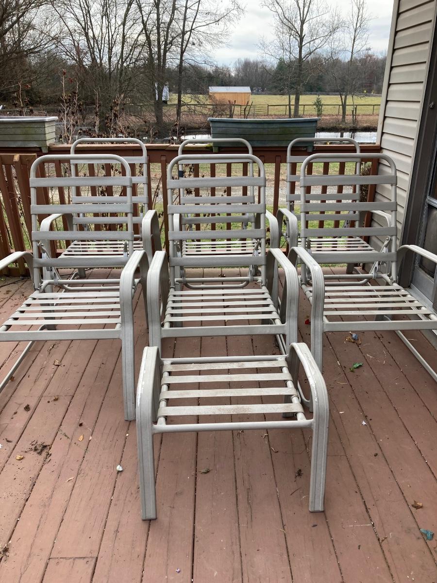 LOT 114J: Six Adjustable Back Patio Chairs with One Ottoman