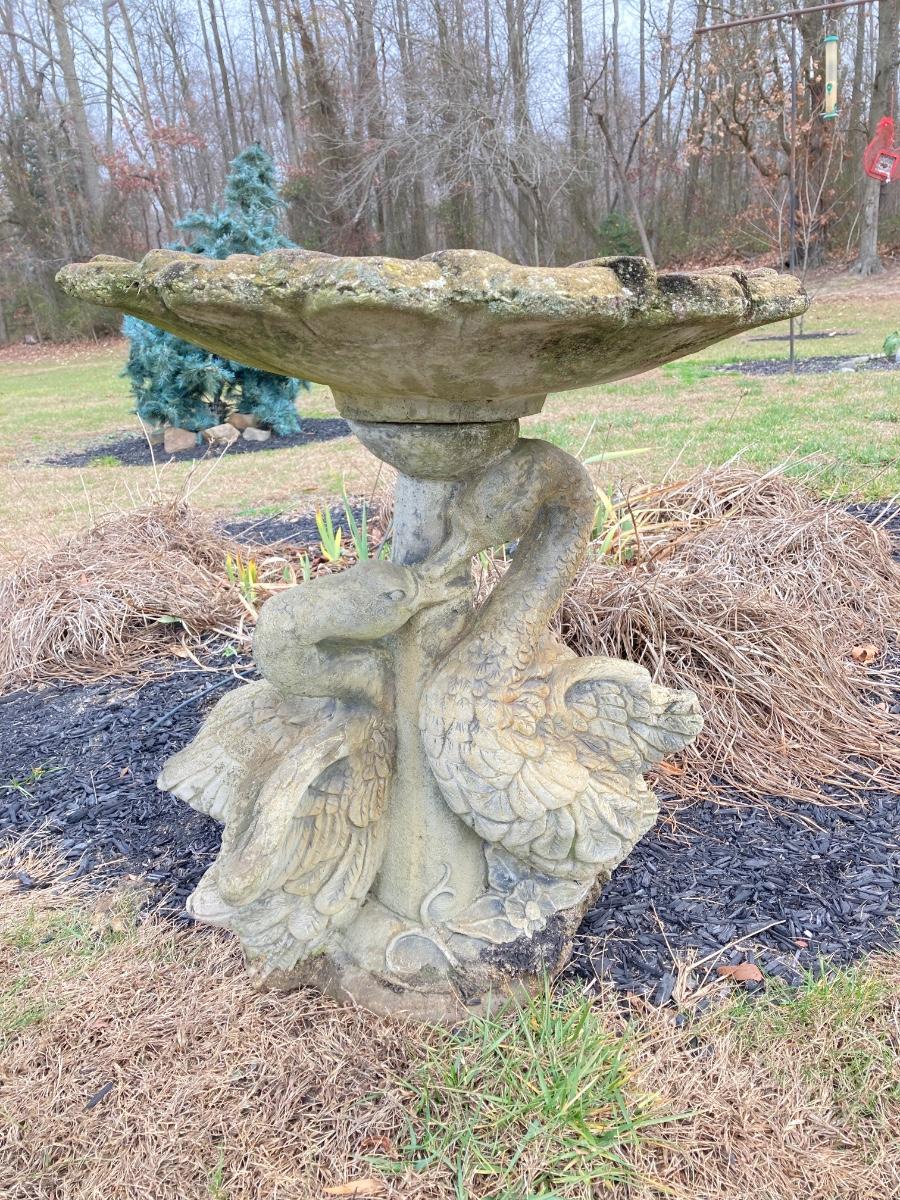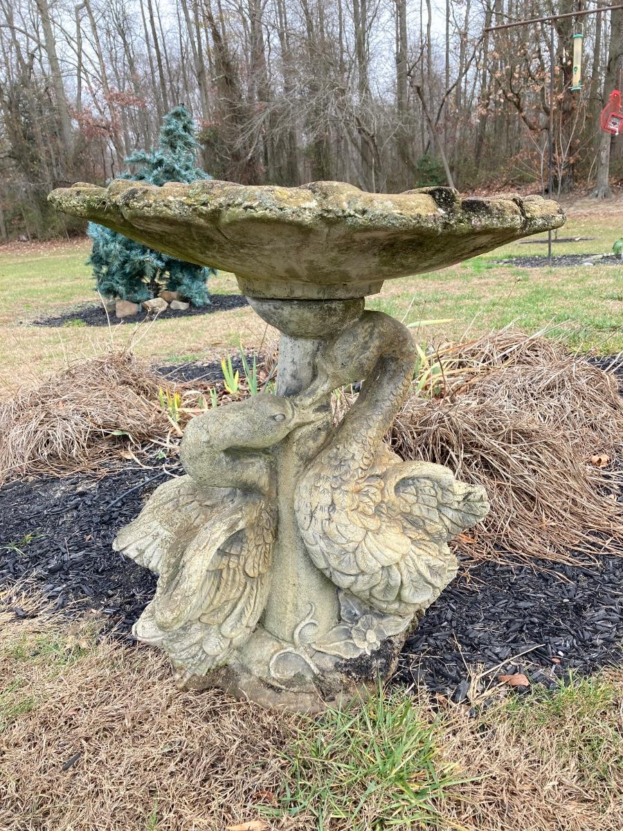 LOT 116J: Vintage Concrete Birdbath with Ducks Base