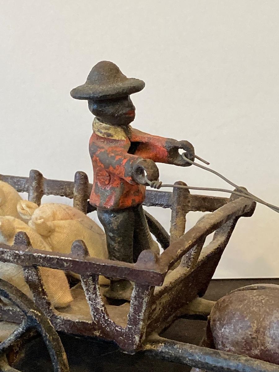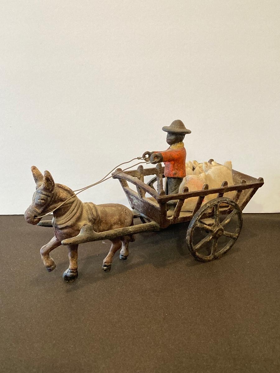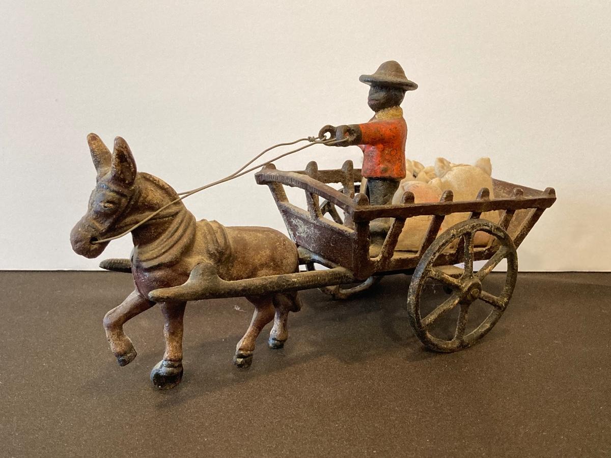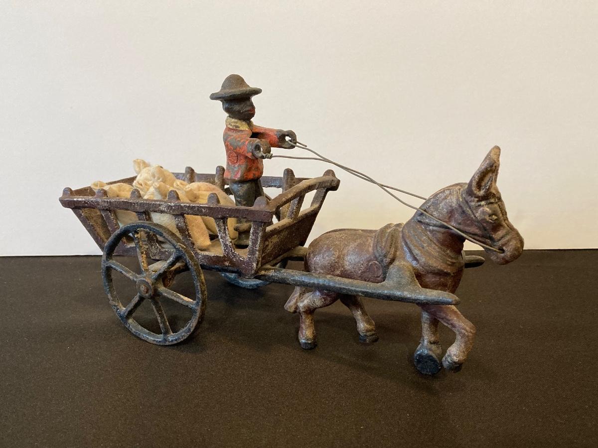 LOT 118J: Cast Iron Folk Art - Donkey and Cart with Potato Sacks