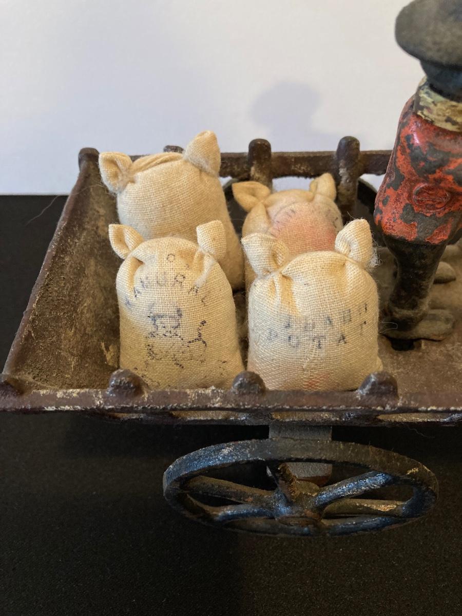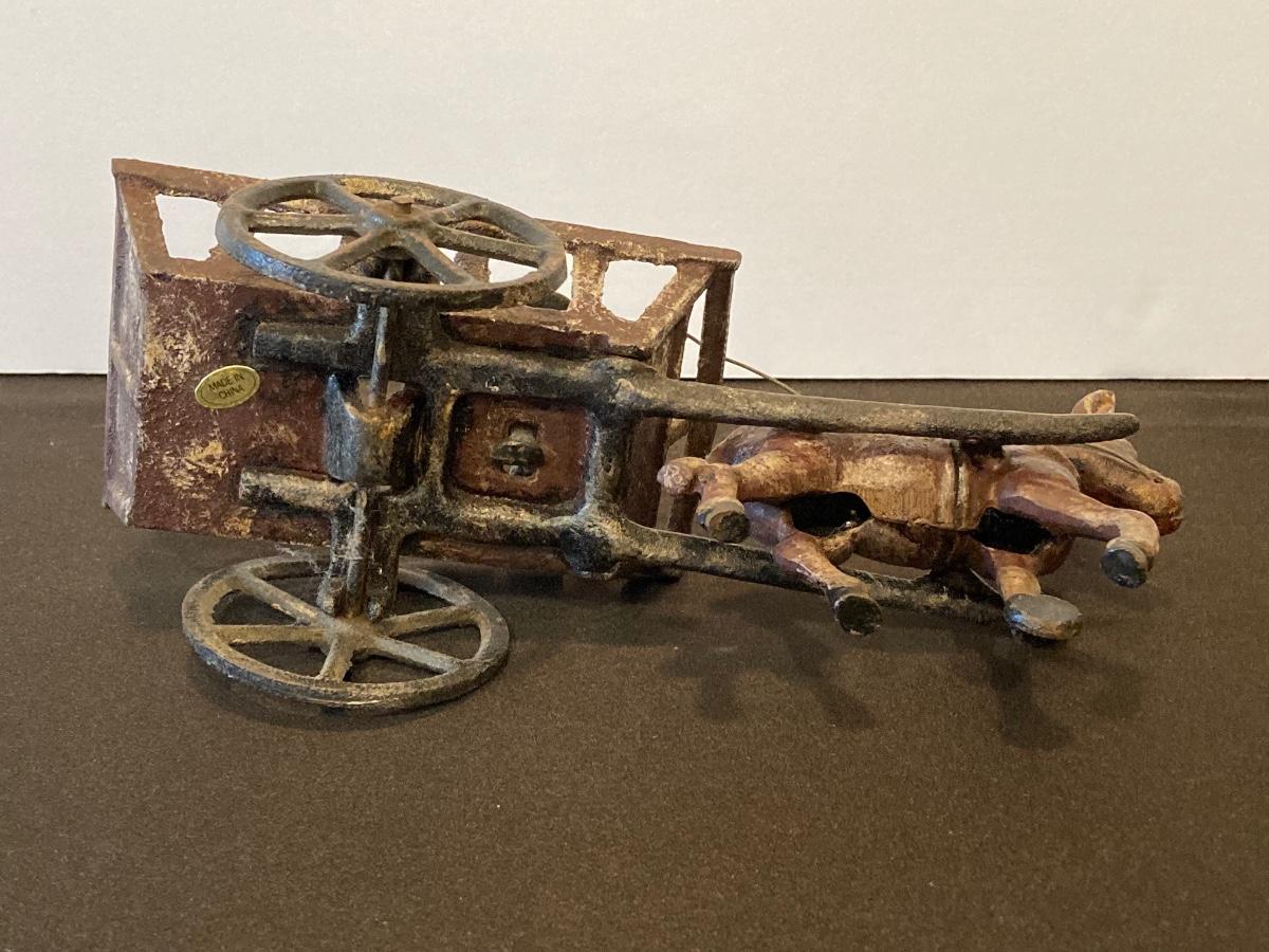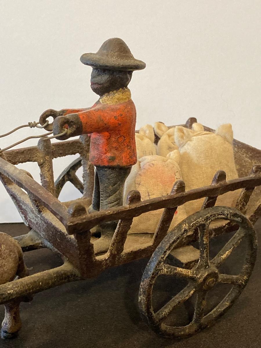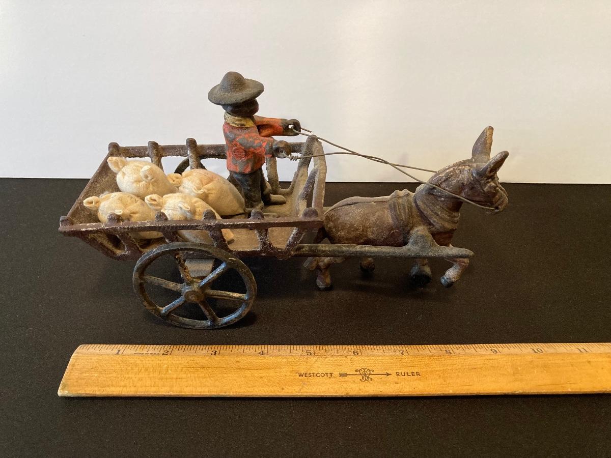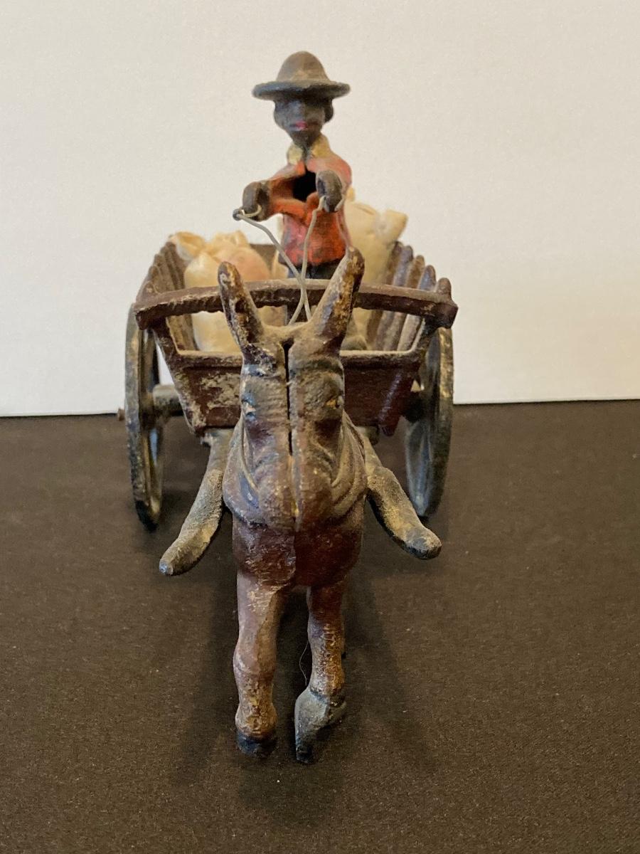 LOT 118J: Cast Iron Folk Art - Donkey and Cart with Potato Sacks