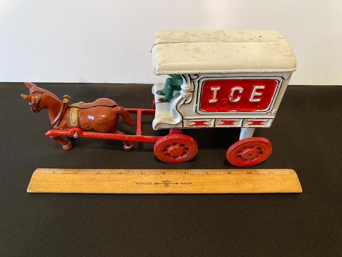 LOT 119J: Cast Iron Horse Drawn Ice Carriage