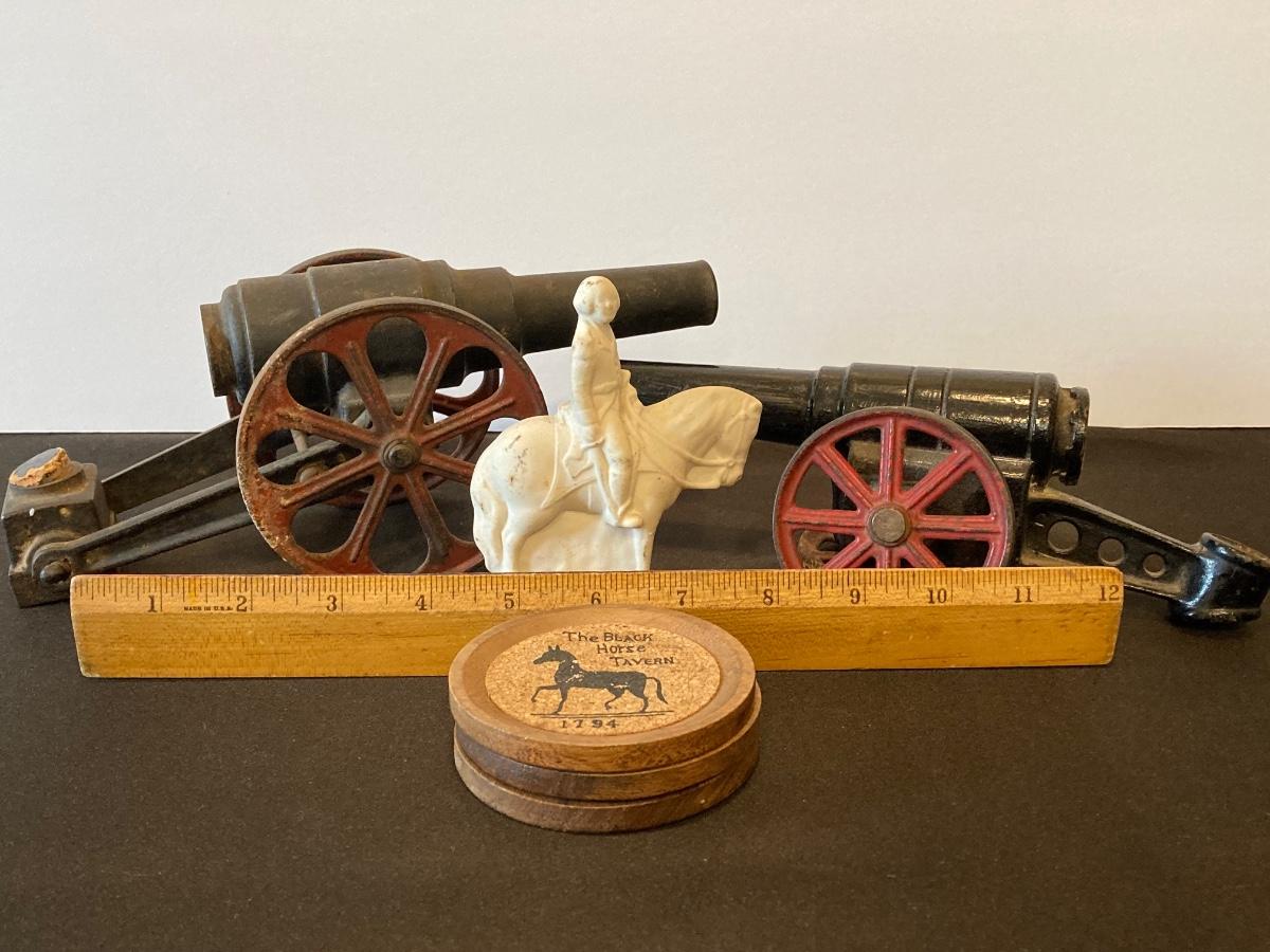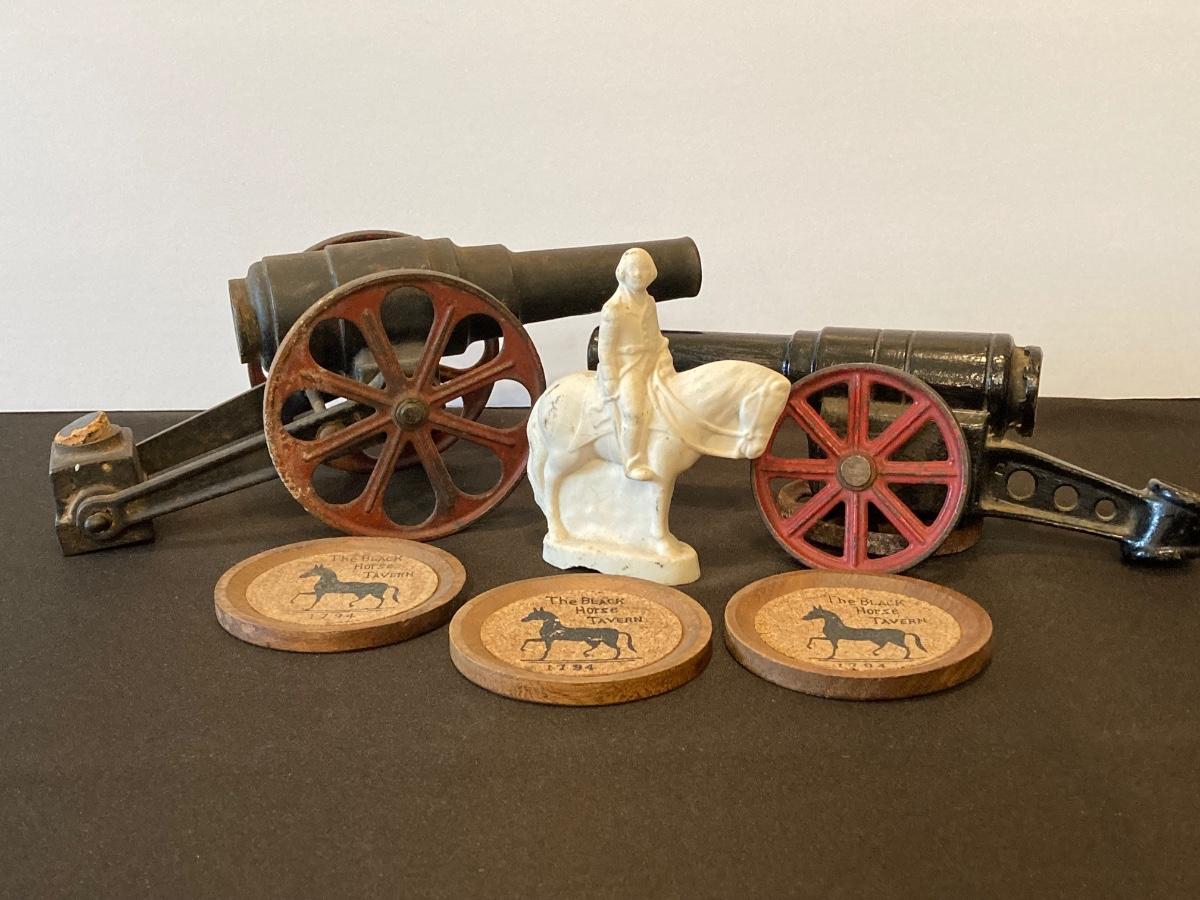 LOT 121J: Vintage Cast Iron Cannons, George Washington Figurine and More