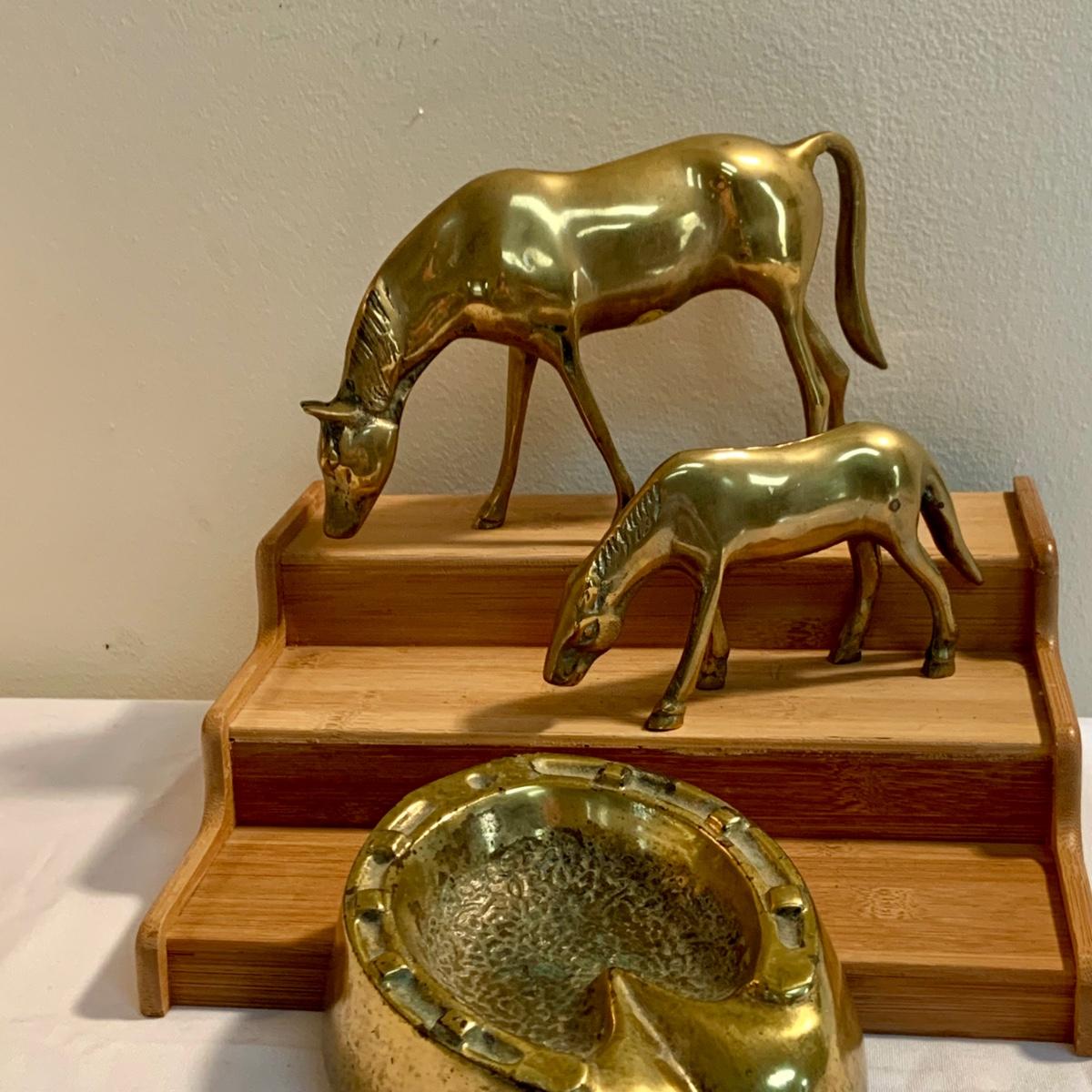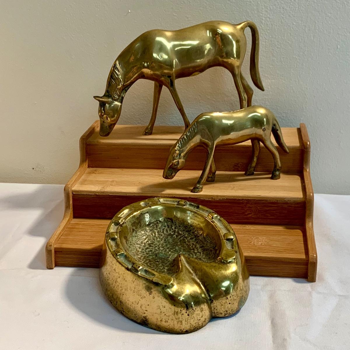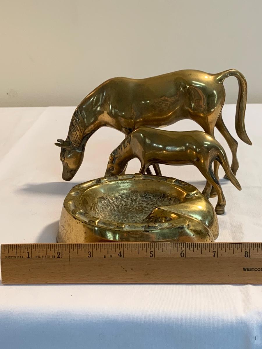 LOT:142G: Collection of Brass Horses and Brass Horse Shoe Ashtray