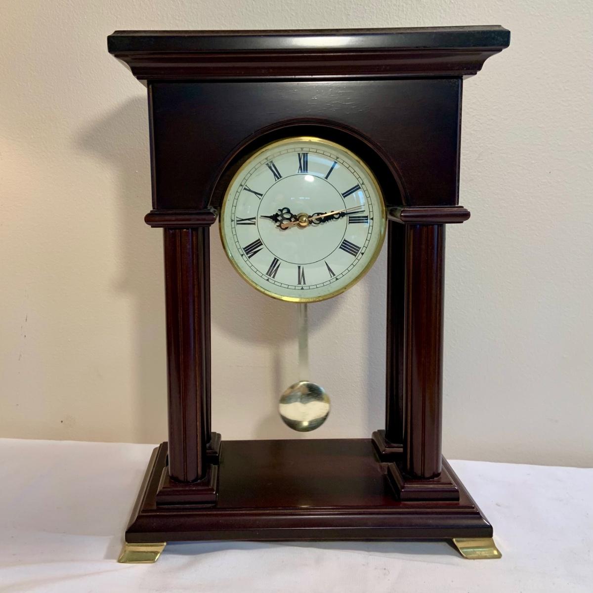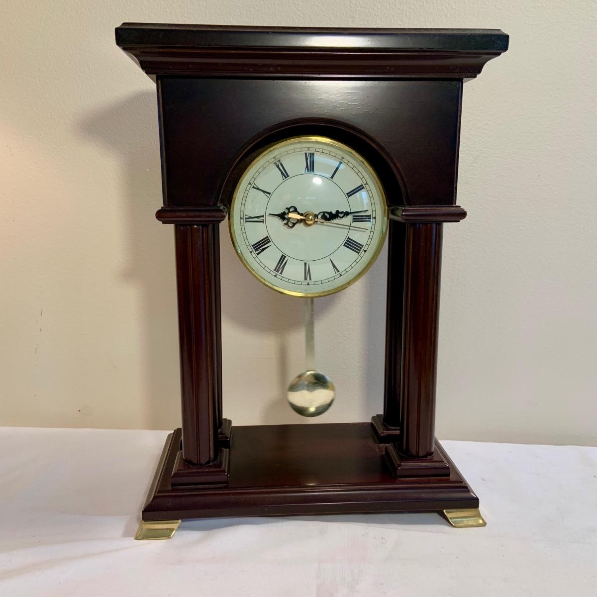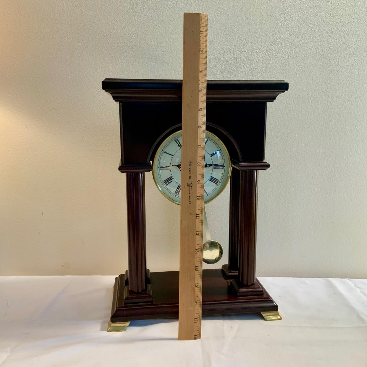 LOT:150G: Beautiful Wood Mantle Clock with Pendulum