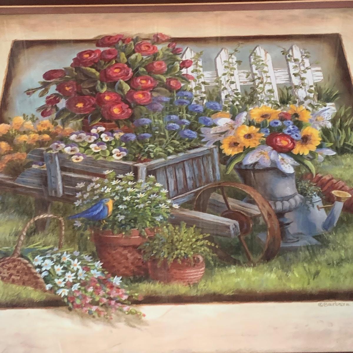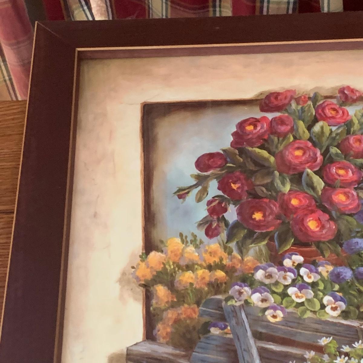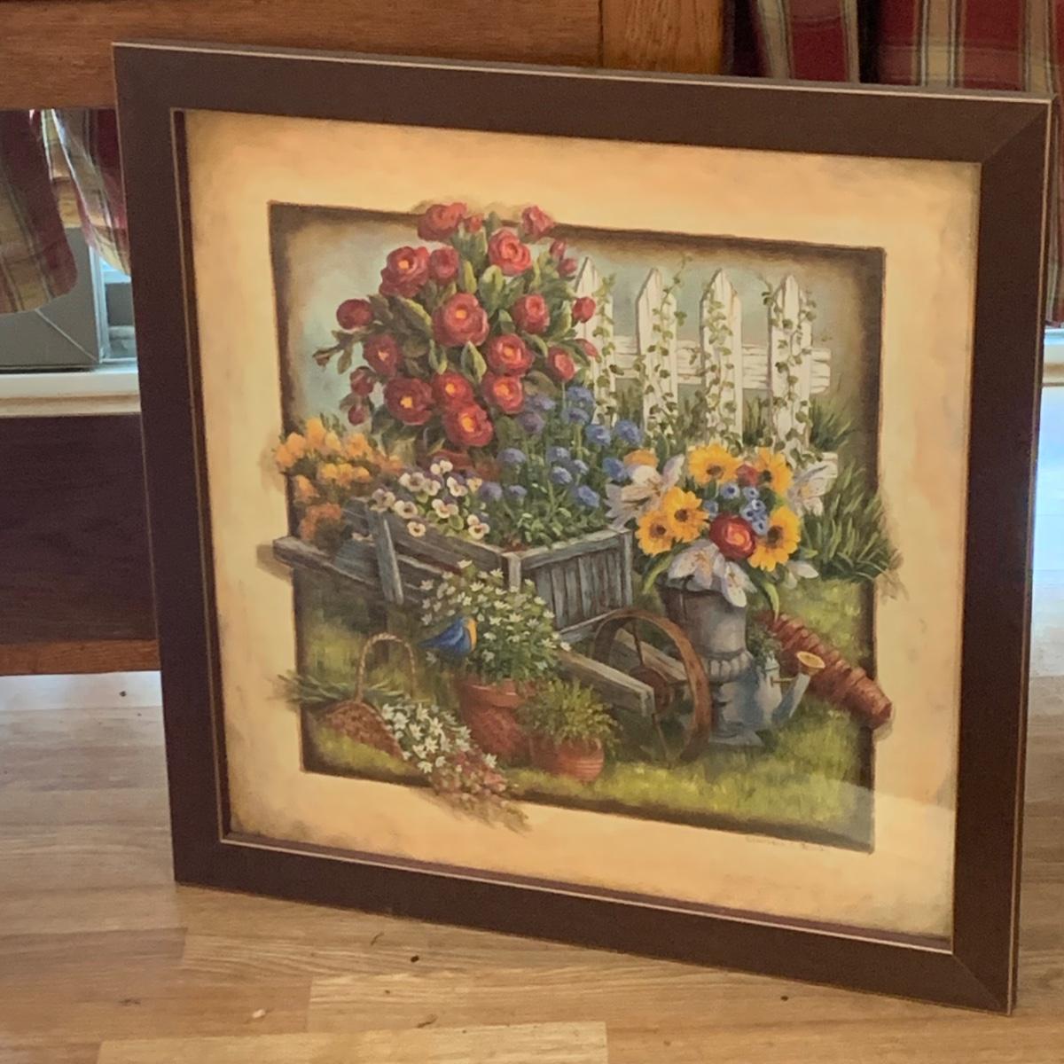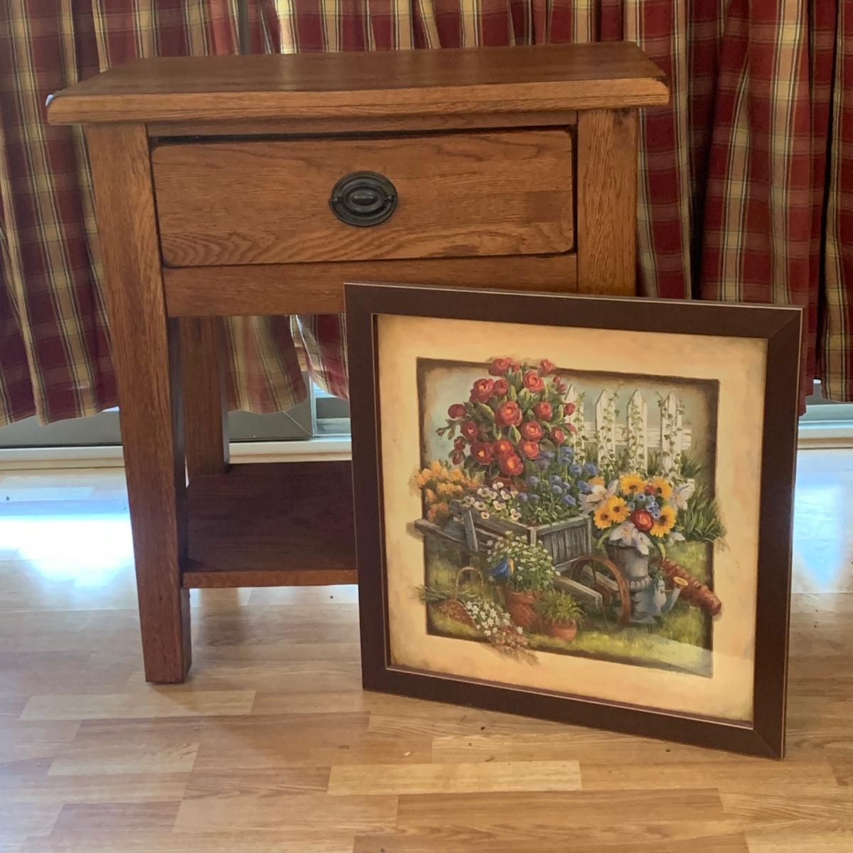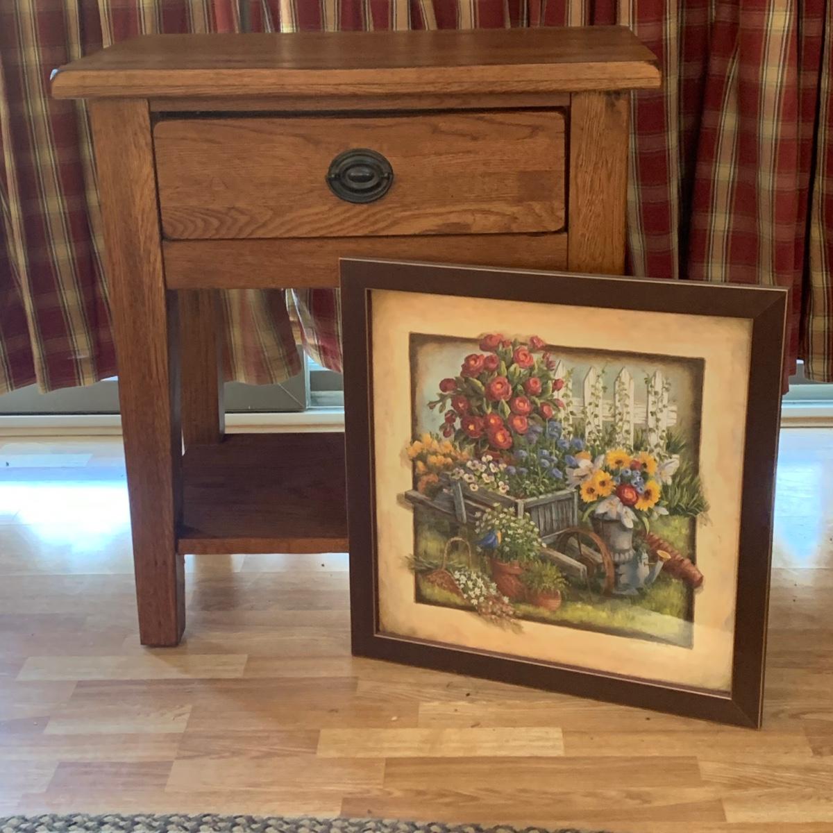 LOT 180R: Broyhill Attic Heirloom Side Table w/ Home & Garden Party Picture/Print Wall Art