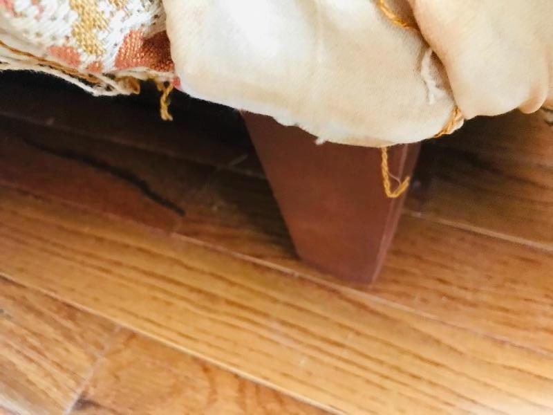 Couch is slipcovered over a brocade type fabric. 84x38x33inches tall. Please see all pictures for content of the lot, condition of the lot, and measurements if taken. Pictures are the best representation of the items listed and items are untested unless indicated in description. Thank you for looking and have fun bidding!