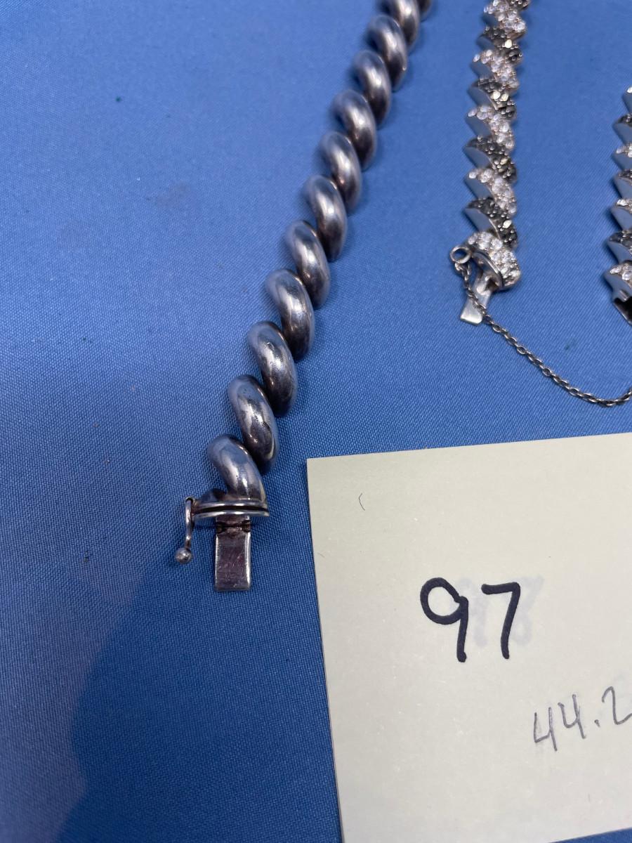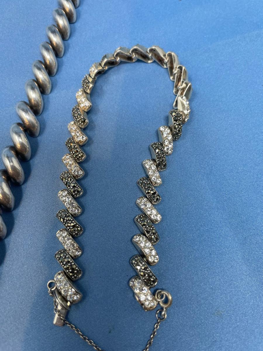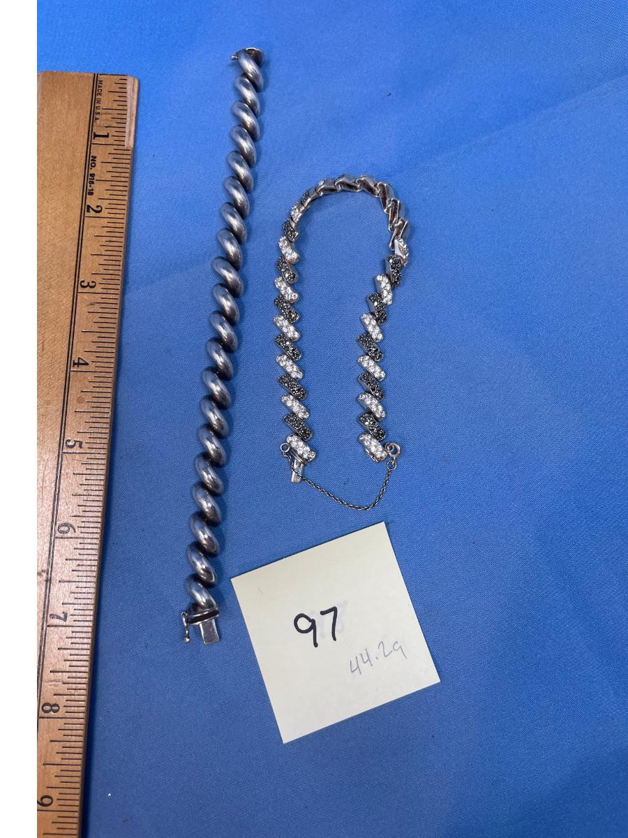 The one has black/ clear CZs. Both in good shape, ready to wear. 44.2 grams total weight.
