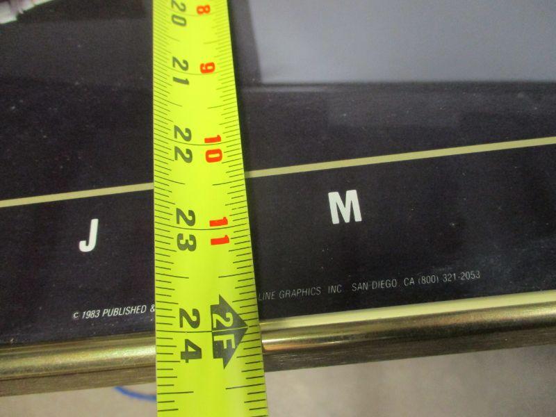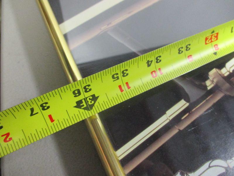Print is in good condition. Gold color metal frame has some nicks and scrapes. Bottom left glass is cracked. Size approx 24 x 36