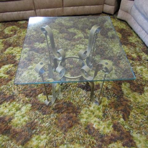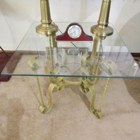 BRASS COLORED IRON BASS WITH GLASS TOP 24" SQUARE