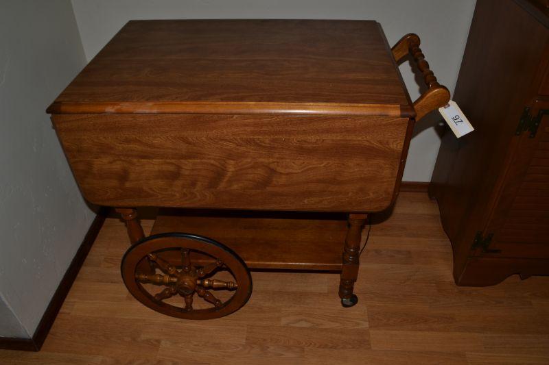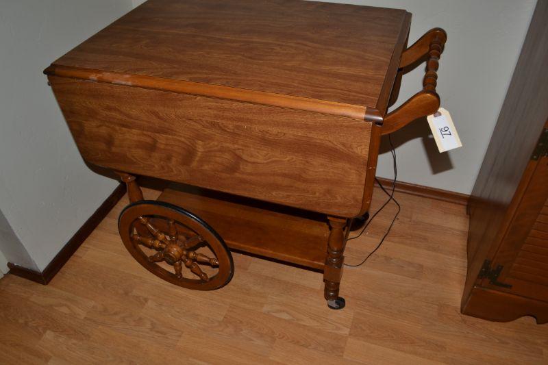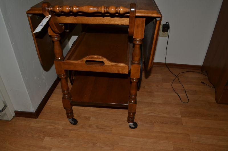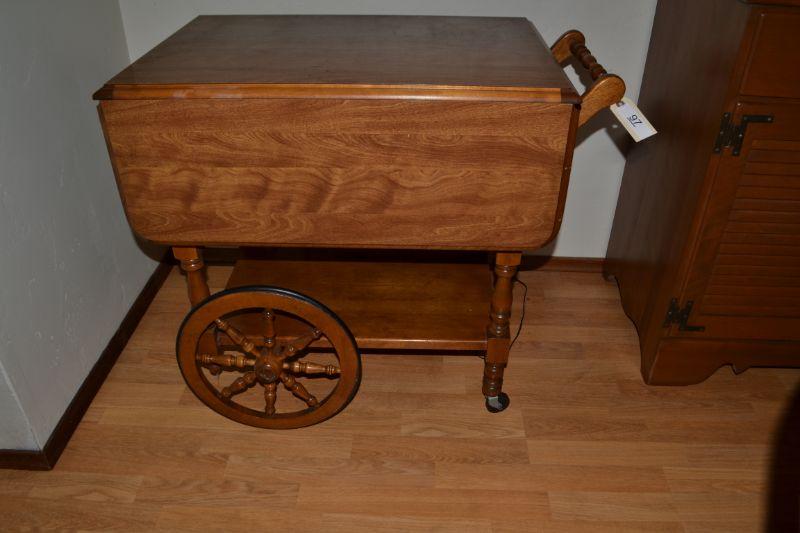 LOT 97 VINTAGE MAPLE TEA CART WITH REMOVABLE TRAY