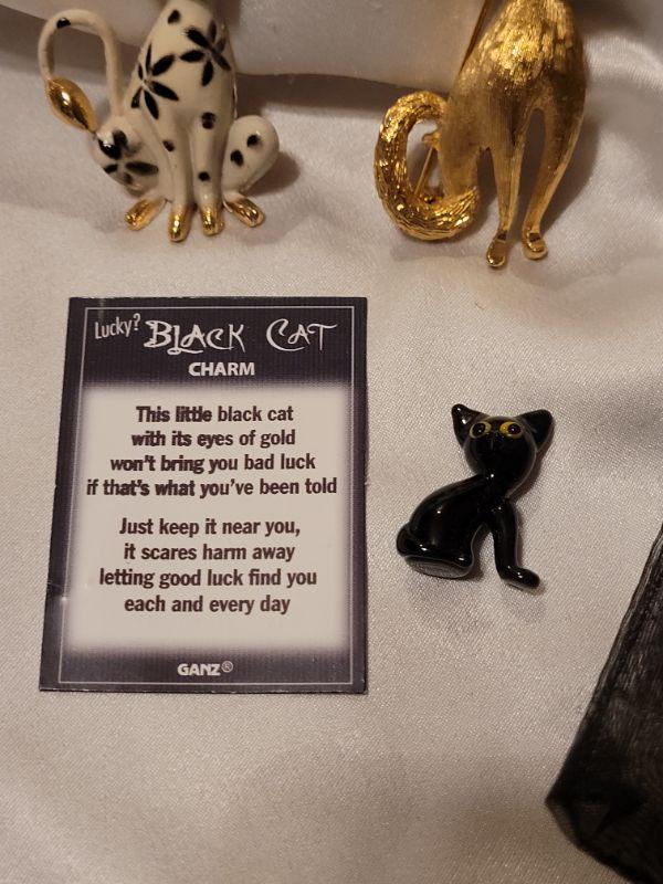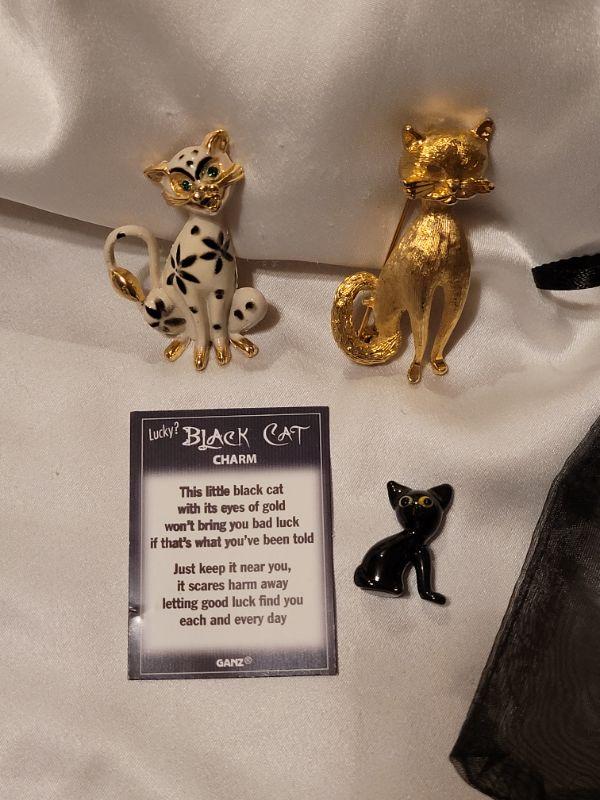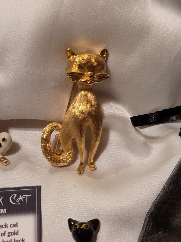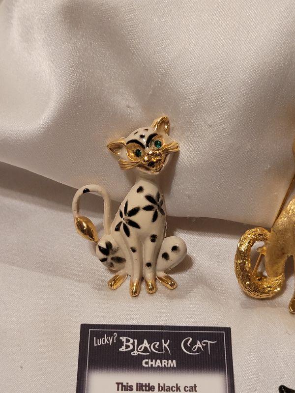 Lot 97: Cat Brooches and Pocket Charm (1 Gold Tone,  1 Enameled)