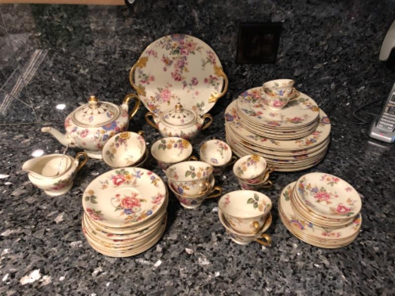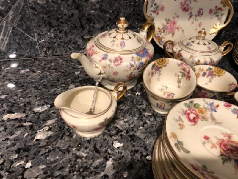 Lot 97. 57-piece set of Rosenthal “The Sunray”“”tea cups/saucers, teapot, cream/sugar, platter, etc.--WAS $175““NOW $131.75