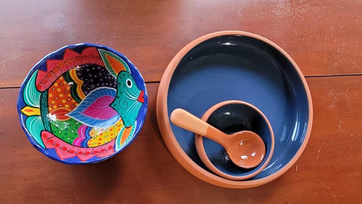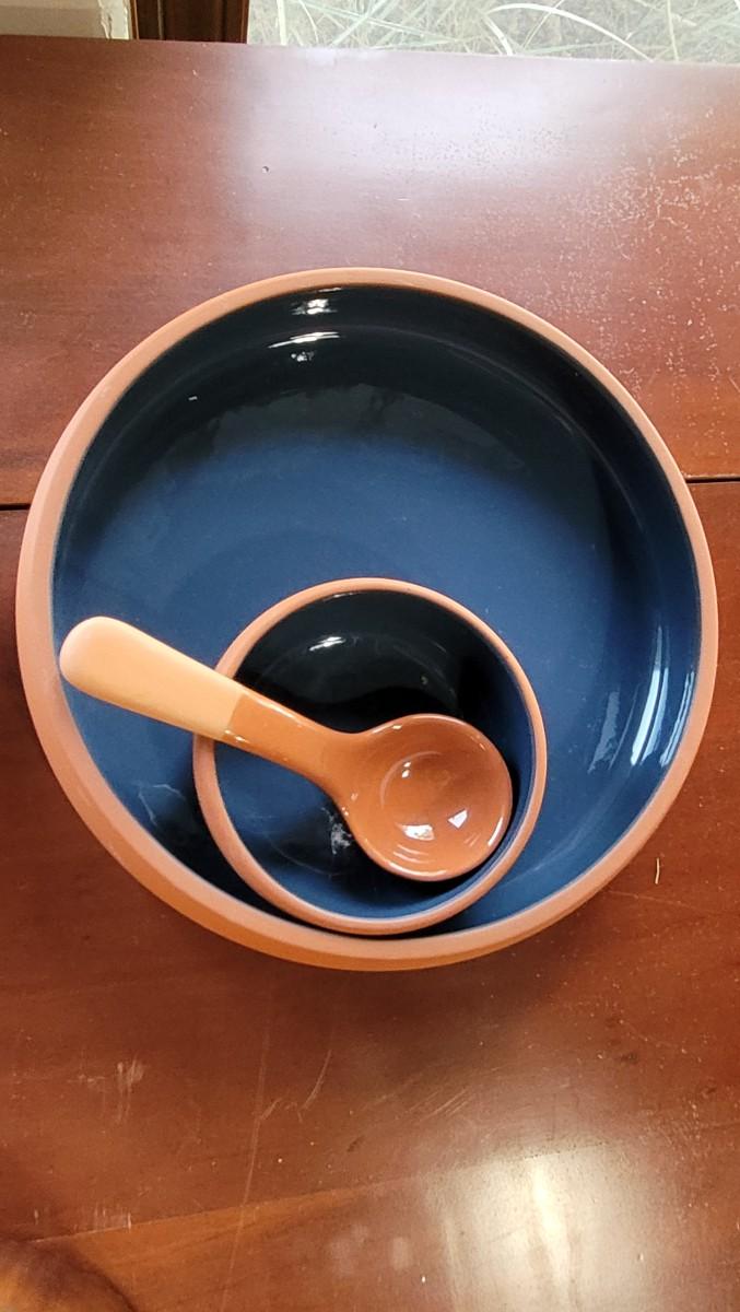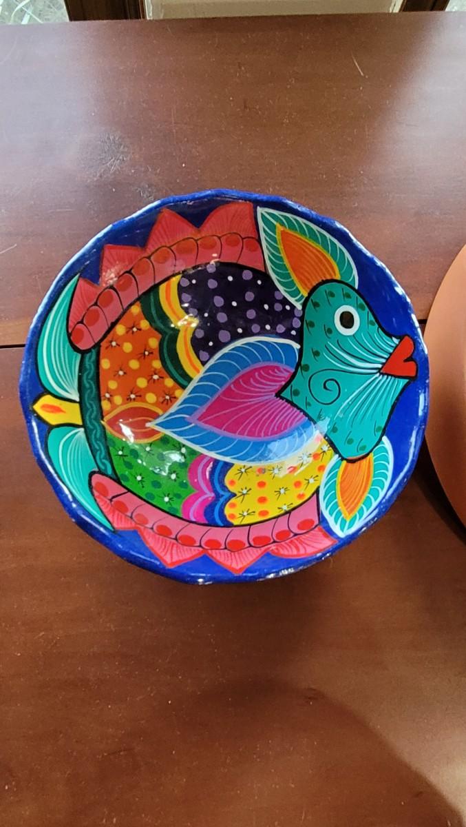 Lot 97: Terracotta Chip & Dip Dish and unmarked Handpainted Mexican Pottery