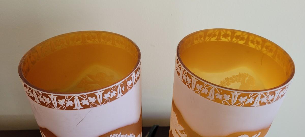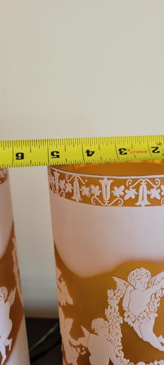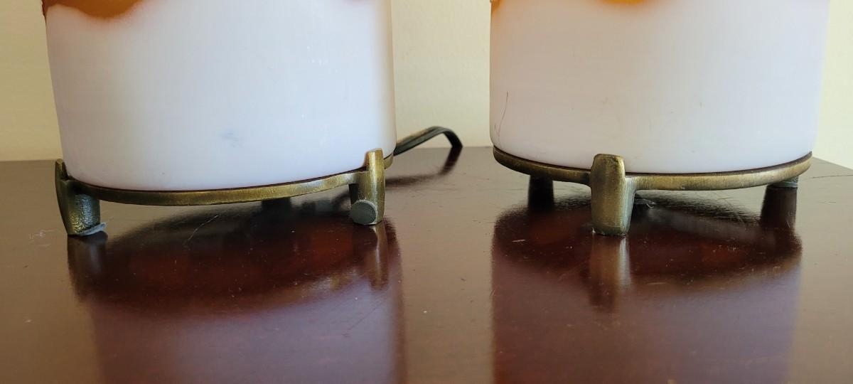 This Pair of Vintage Glass Table Lamps are in nice condition for age. The one with a bulb works great so we assume the other works as well.