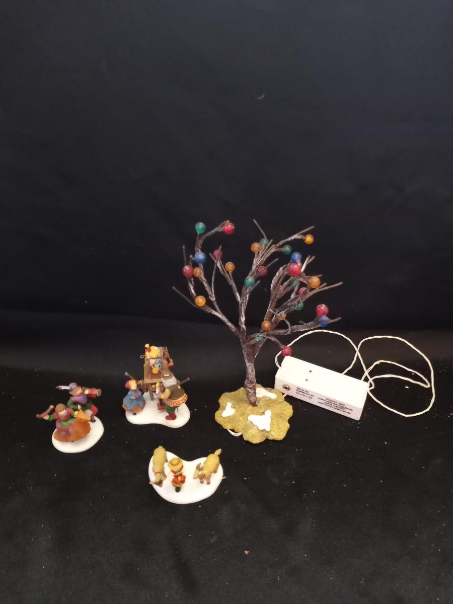 LOT 97  LIGHTED TREE AND OTHER CHRISTMAS VILLAGE ACCESSORIES