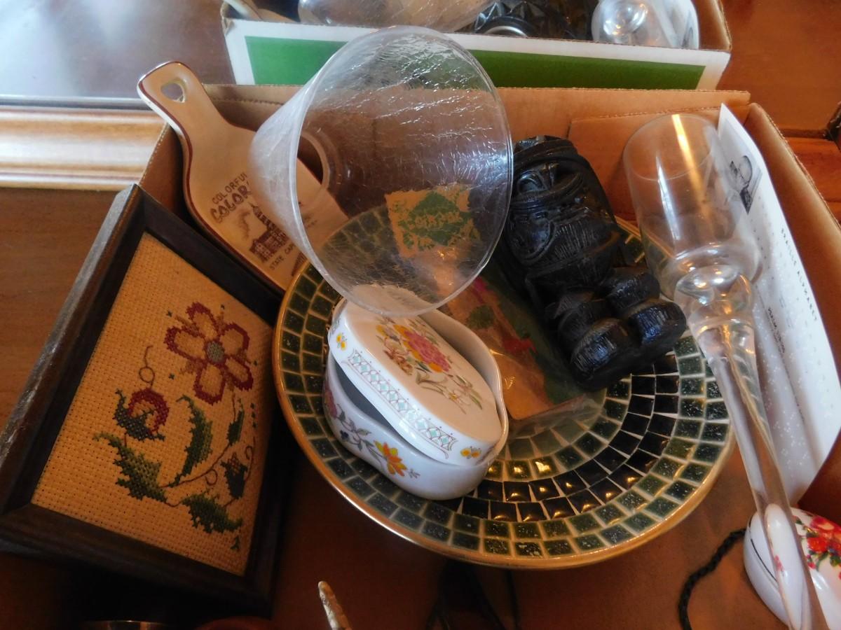 BOX FULL OF KNICK KNACKS AND HOME DECOR