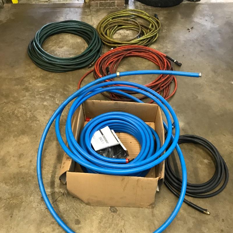 Max Line quality tubing with various hardware and accessories to mould into place. Lot also includes eight air hoses of varying lengths and seven have push button quick release couplers. A great set of hoses for the shade tree or professional mechanic.