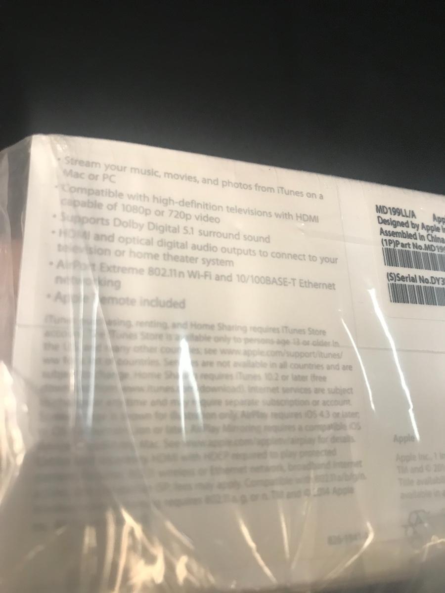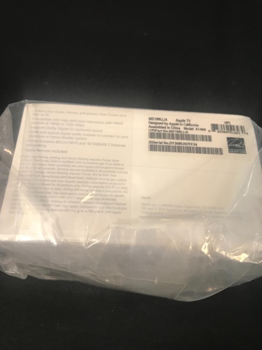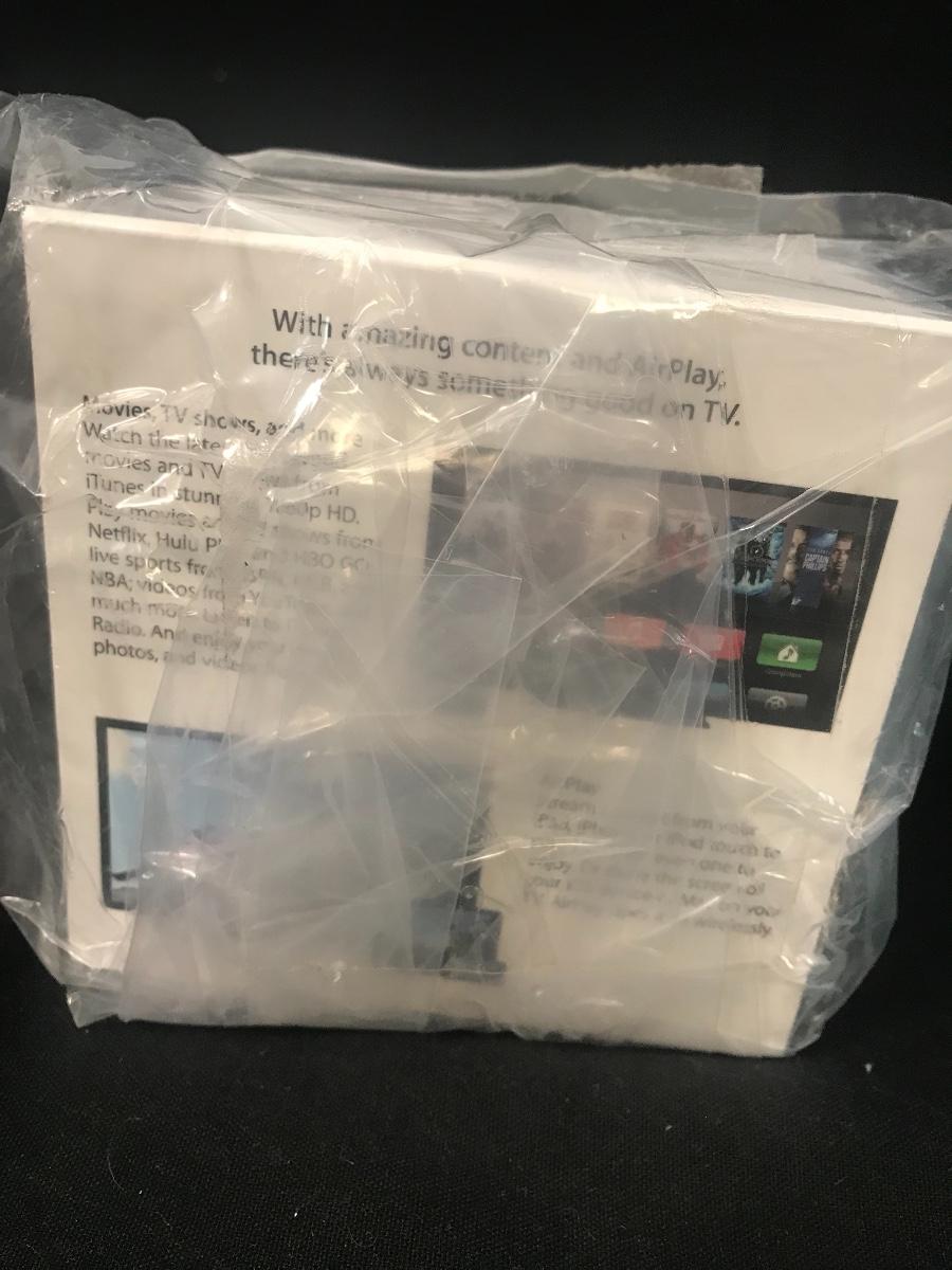 Sealed Apple TV. Untested. Unknown origin or condition. Please see all pictures as they are the best representation of the items. The pictures show condition, measurements if taken, and what is included in the lot. Due to the large amount that we photograph and the time frame, we are not always able to take measurements. All items unless noted, are pre-owned and have been used. If you purchased furniture, you must bring help. We do not allow one person to carry large furniture out on their own. Bring help, tools and a truck for the safety of our client’s homes, and your personal safety. Company policy. Thank you.