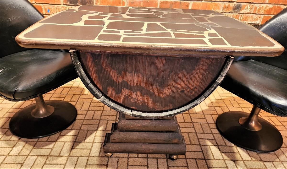 Lot #97  Awesome Vintage Pub Table w/chairs  - Barrel Motif