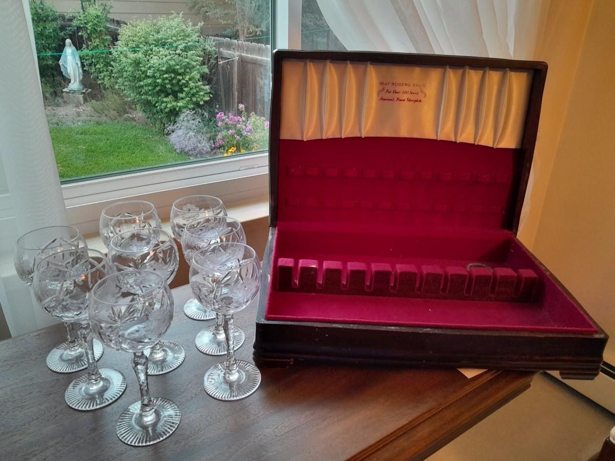 BEAUTIFUL STEMWARE WITH WOODEN FLATWARE CHEST
