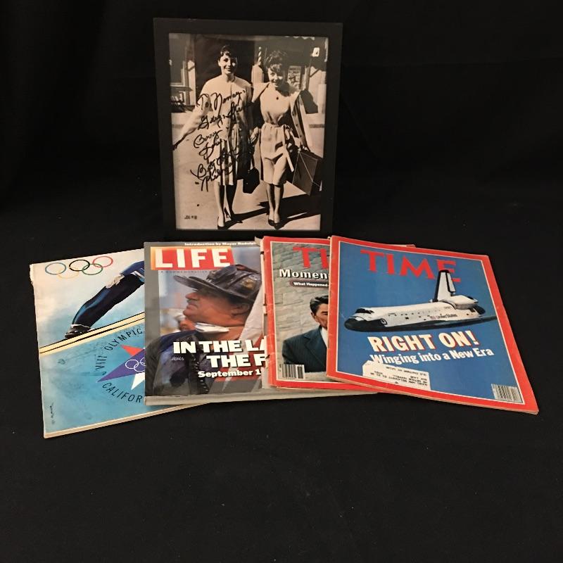 Lot includes signed photo of Betty Lynn of Andy Griffith show fame. Also includes a Life magazine about September 11th, a 1960 Olympic Winter Games souvenir program and two Time magazines from memorable times.