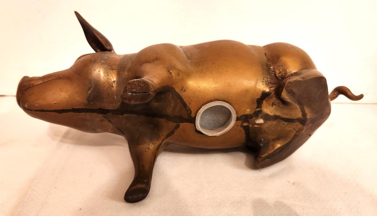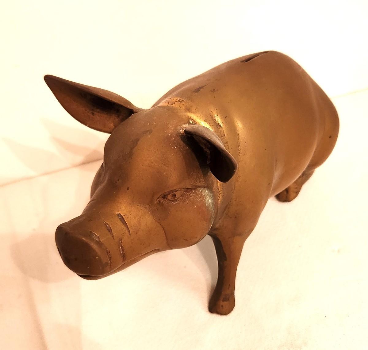 Large Vintage Brass Pig Coin bank - 14" long, 7" Tall. Vintage condition.