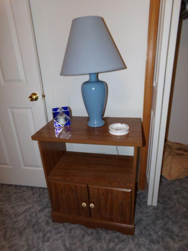 THIS CHEST LOOKS GOOD BIT IS NOT REAL WOOD AND PROBABLY WOULDN'T WORK FOR SOMEONE WHO IS ROUGH ON FURNITURE. THIS LOT ALSO INCLUDES A MICROWAVE STAND ON CASTERS, TABLE LAMP,, AND A PICTURE
