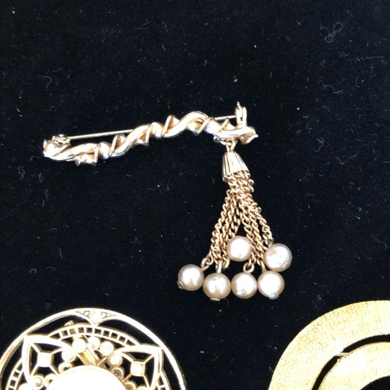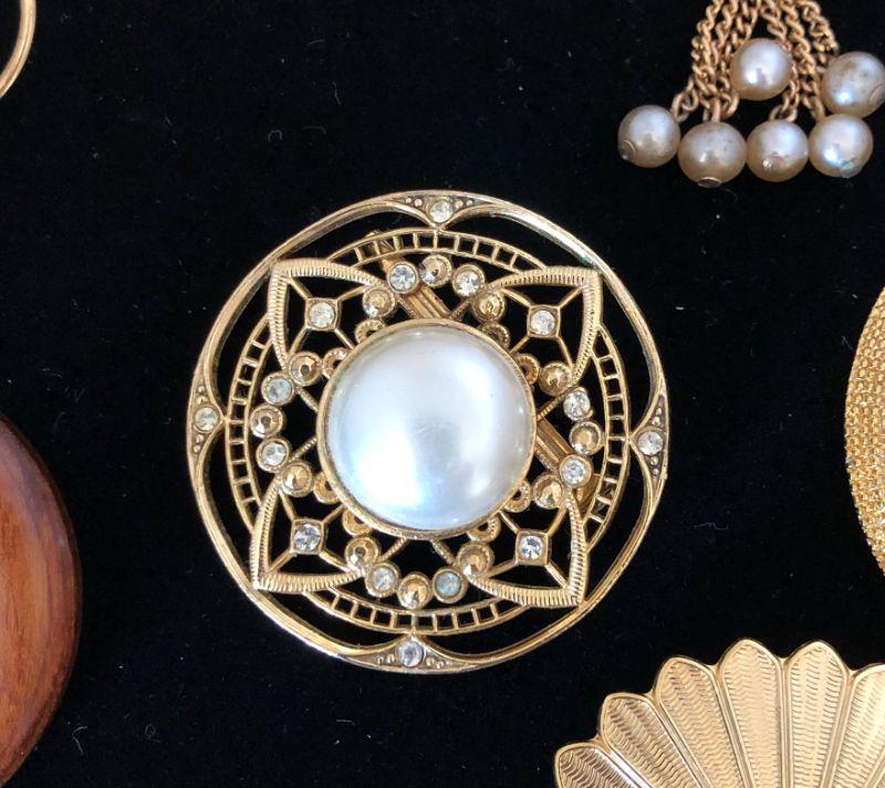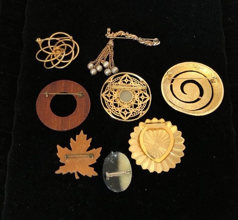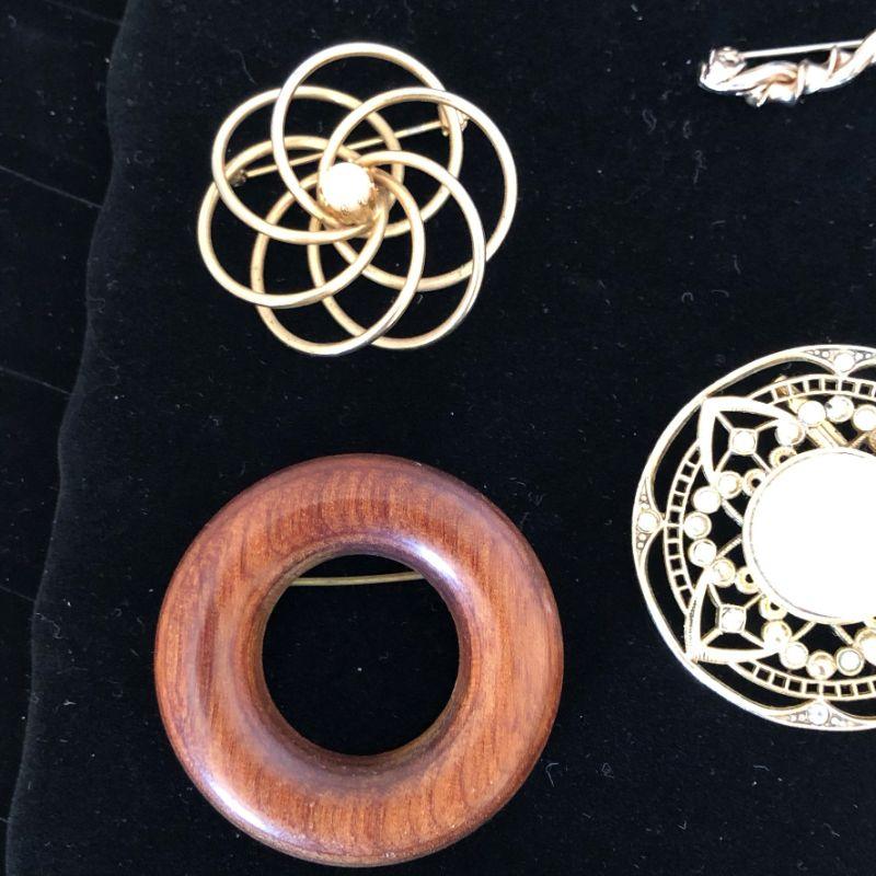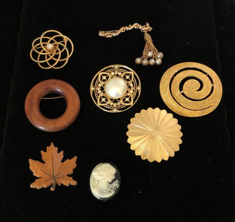 Lot 97 - Collection of Brooches, Wood and Faux Pearl