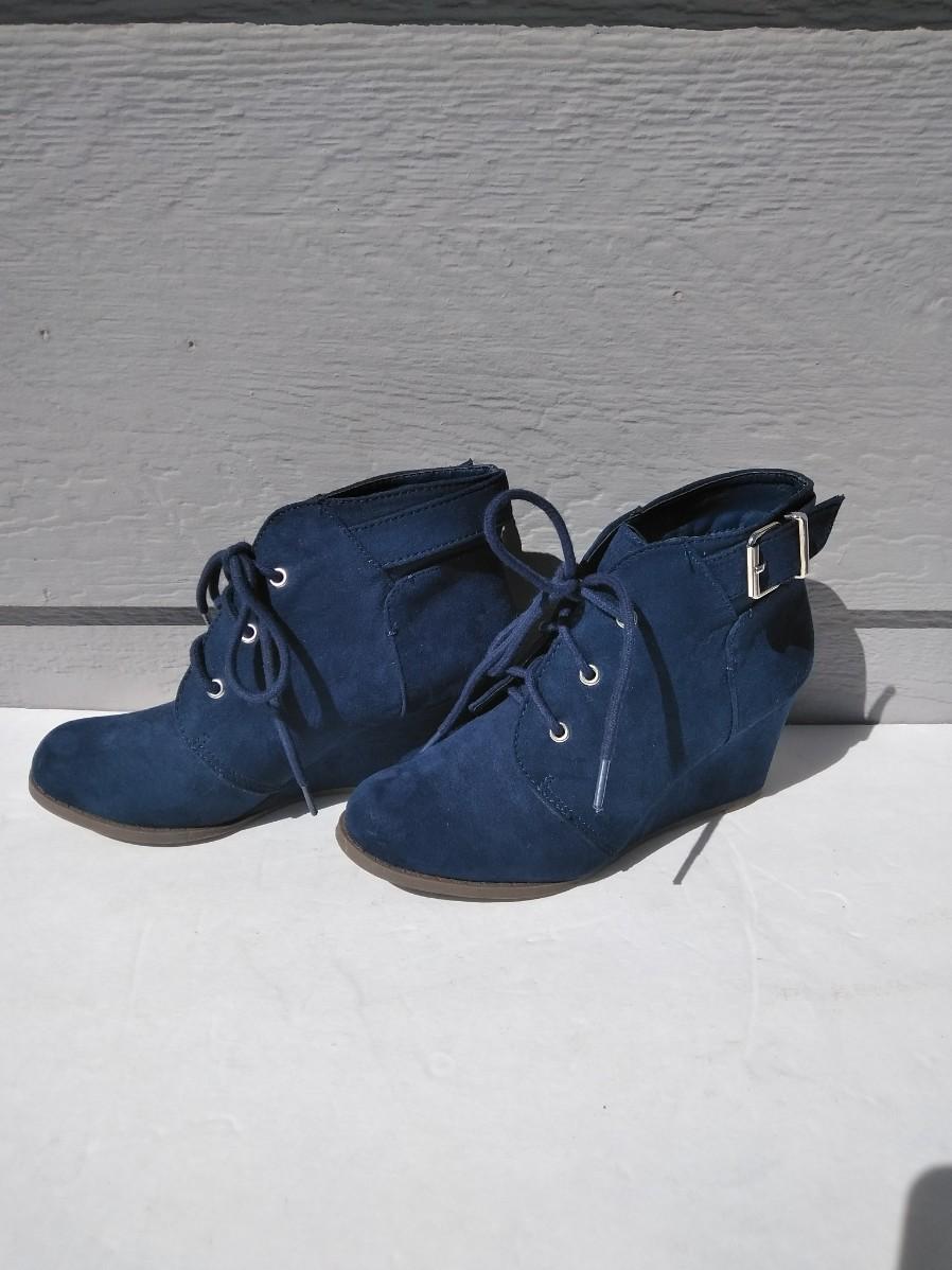 LOT 97 DARK BLUE SO WEDGE HEEL BOOTS 6M