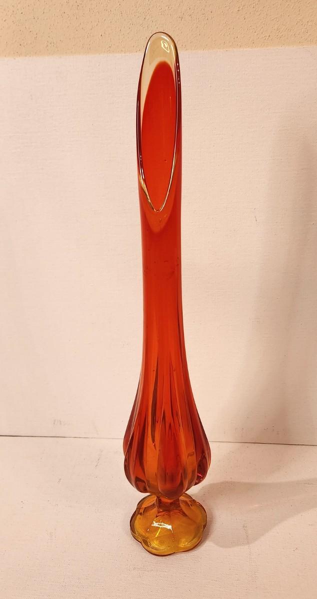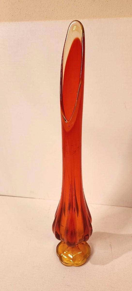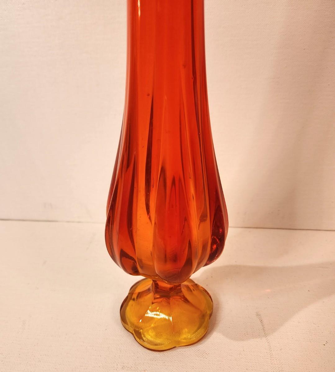 Gorgeous MCM L.E. Smith Amberina Swung Vase in the "Simplicity" pattern - 18" tall. Orange/yellow. Great condition.