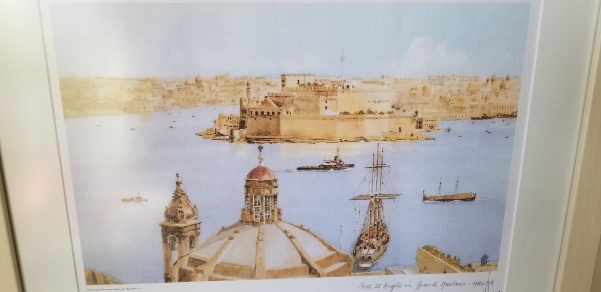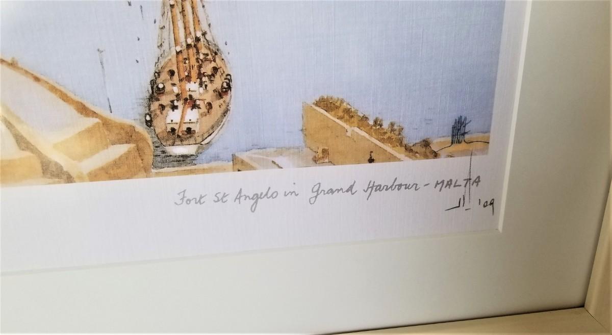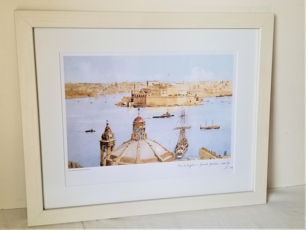 Nice framed print - "Fort St. Angelo in the Grand Harbor, Malta - dated 2009. 20" across, 16.25" tall. Good condition.