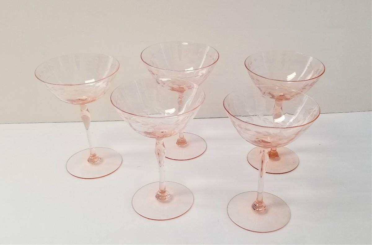 Lot #97  Group of 5 Vintage Pink Crystal Goblets/Champagne glasses