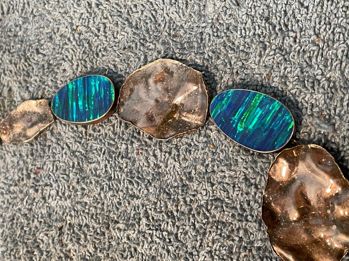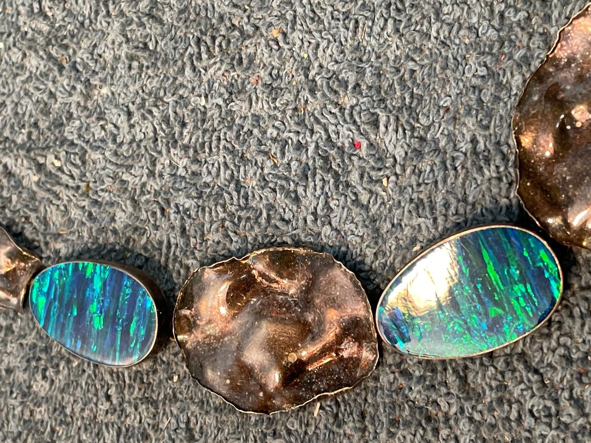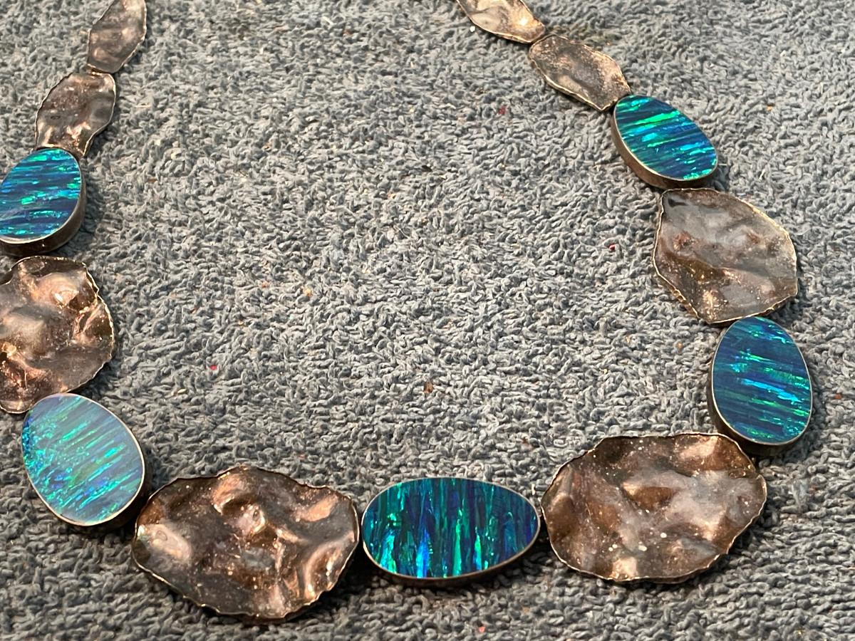 THIS IS AN INCREDIBLE STERLING OPAL NECKLACE!!! OPALS ARE PROBABLY LAB CREATED.. 18 3/8'' LONG.. 53.87 GR.. LIGHT WEAR. NEEDS POLISHING..