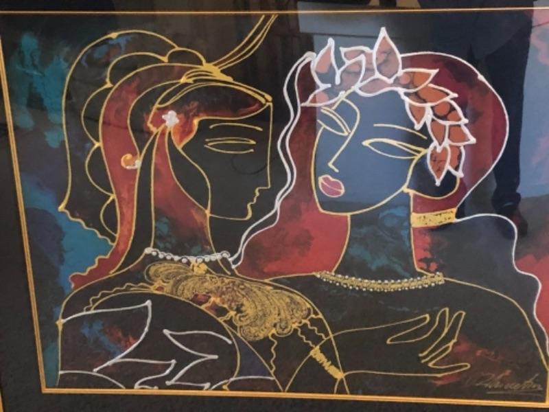 Lot 97 IW140. Limited edition serigraph by Oleg Zhivetin titled “Conversation”; image 33” x 25”; frame 45” x 37”