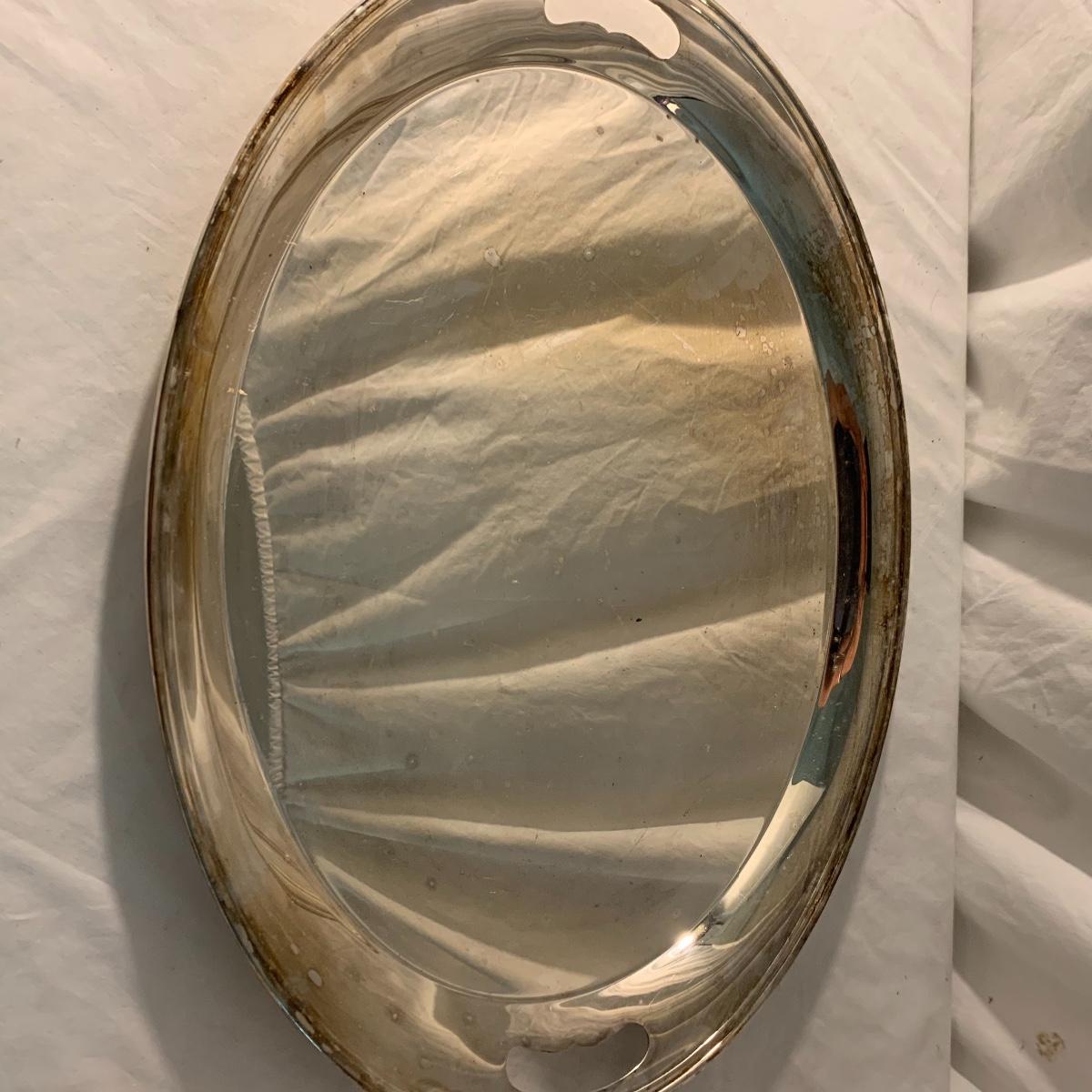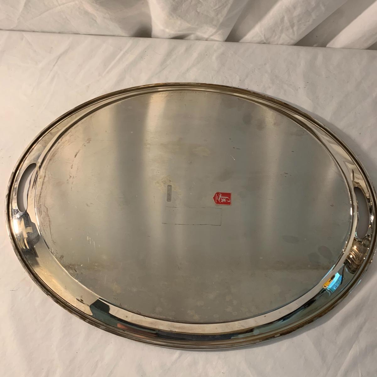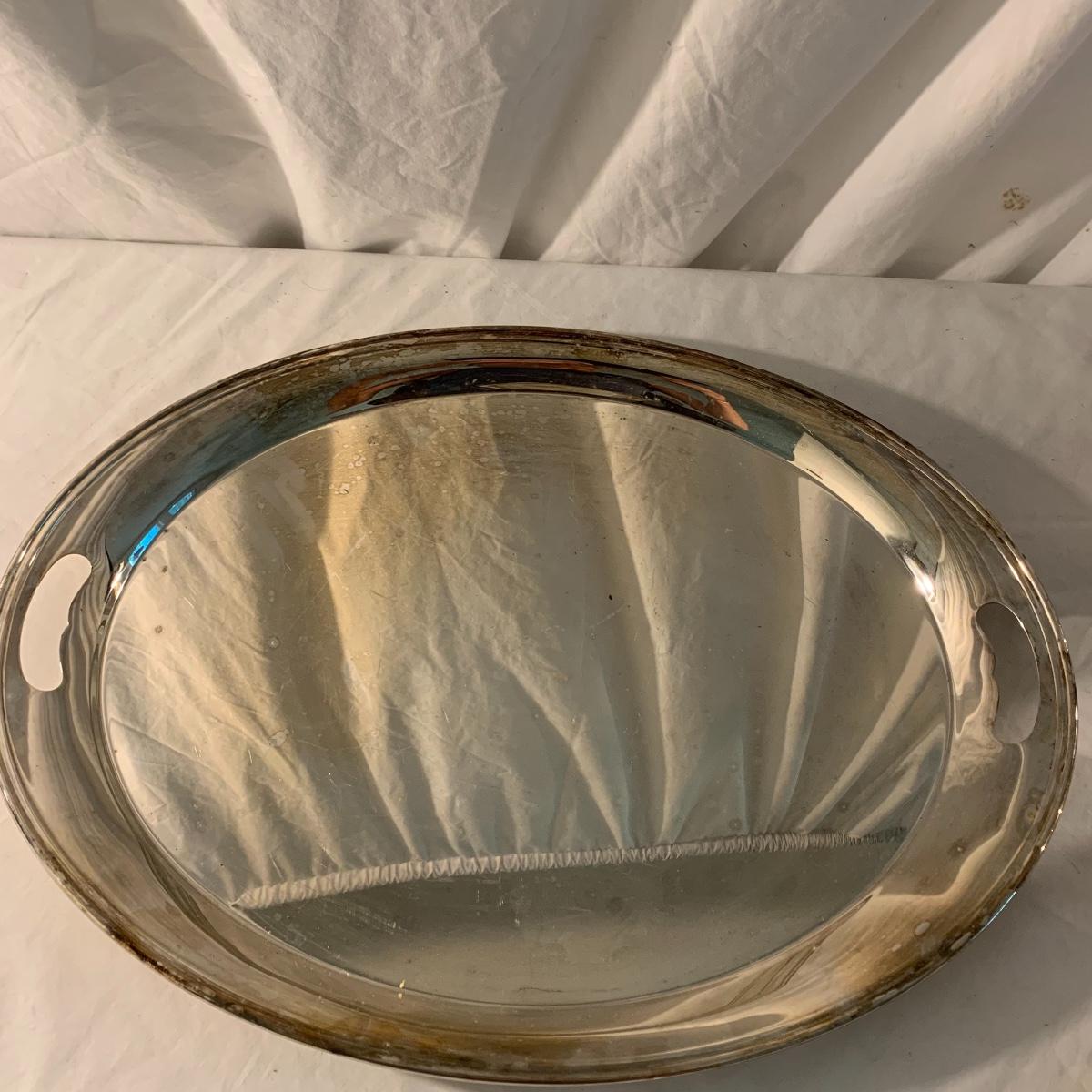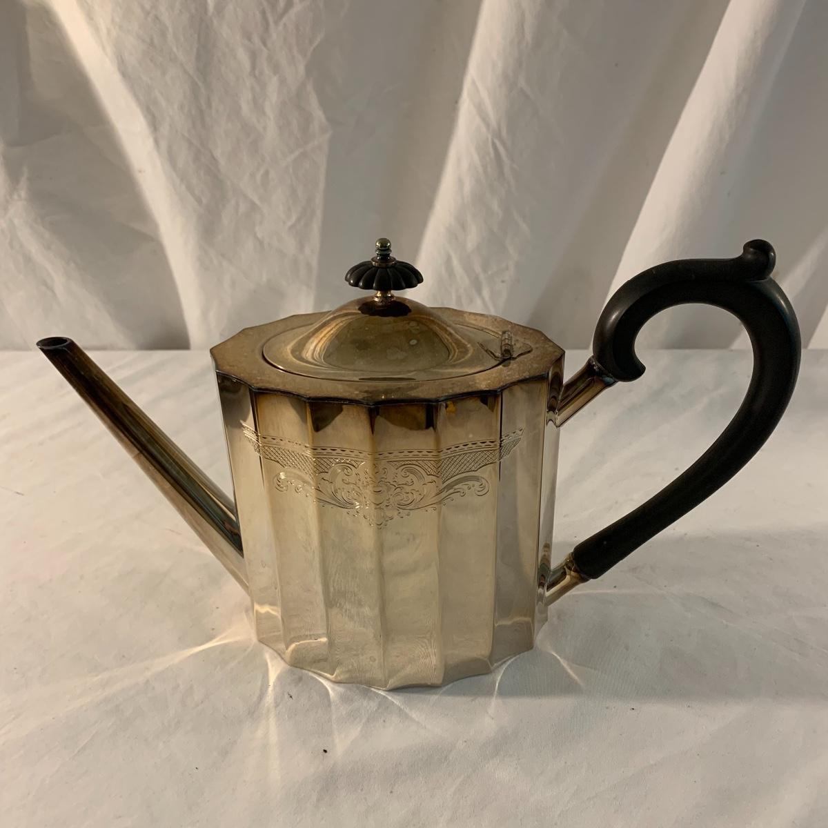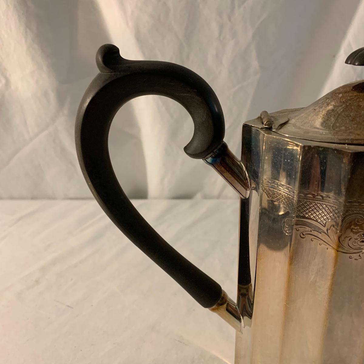 This Tea set is gorgeous! Manufactured by Lunt the set includes a serving tray that measures 22” X 16”, a 9” tea pot, a 6” tea pot, a cream pitcher as well as a covered sugar bowl. All vessels feature a beautiful corrugated body with an engraved design. This set is in good condition but could stand a polishing. All items silver plated.