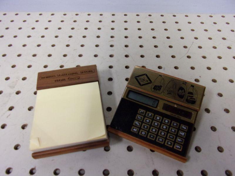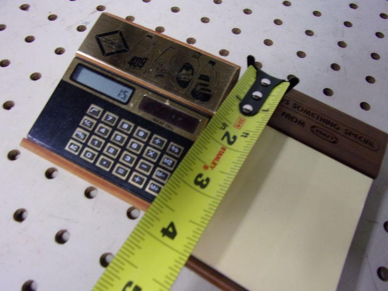 Wooden Kraft note taking pad and Cleaning supplies solar calculator