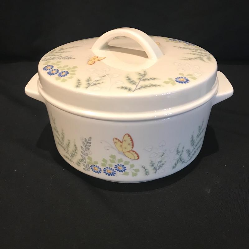 8” diameter. Casserole dish by Lenox with lid. Microwave and oven save. Item available for shipping or local pick up in Asheville, NC.
