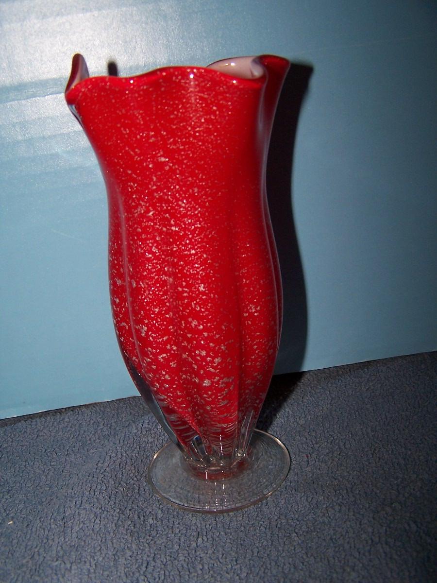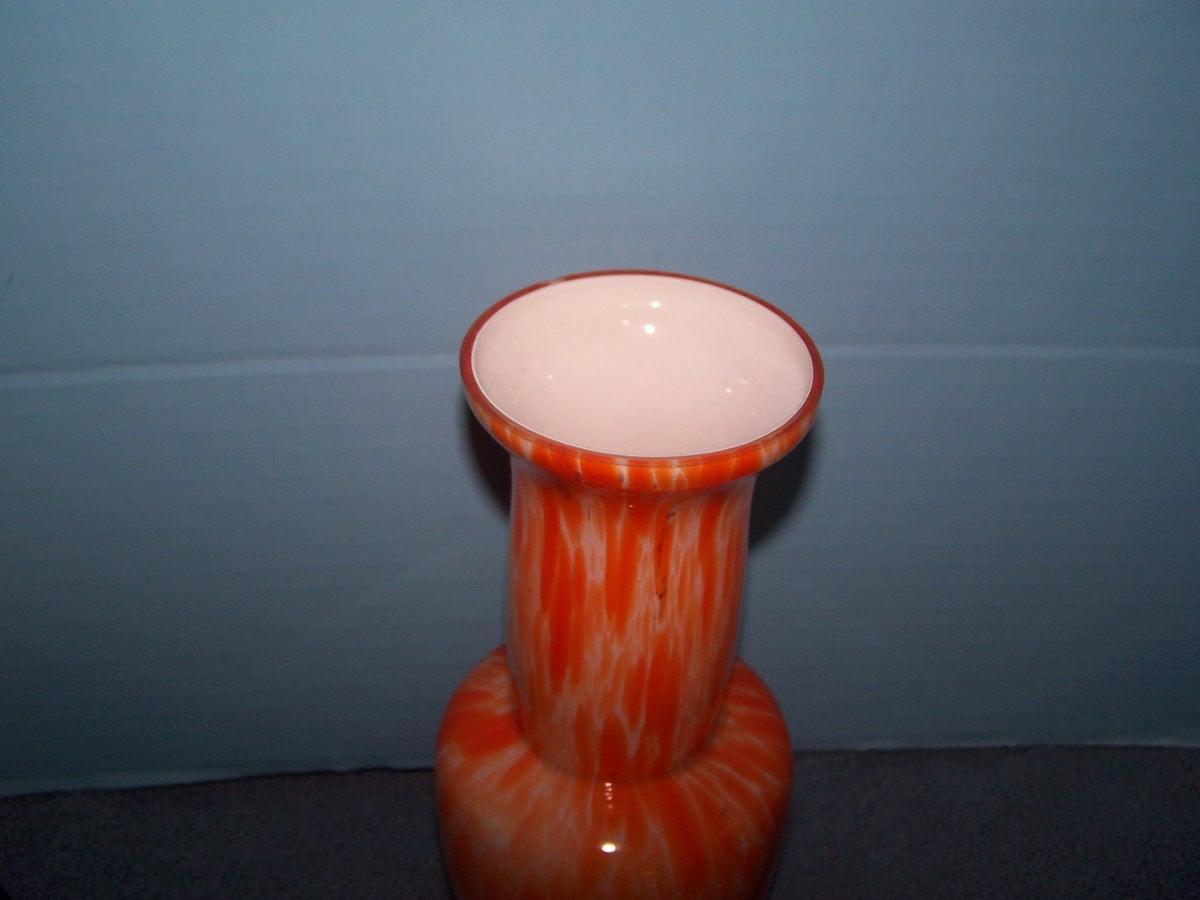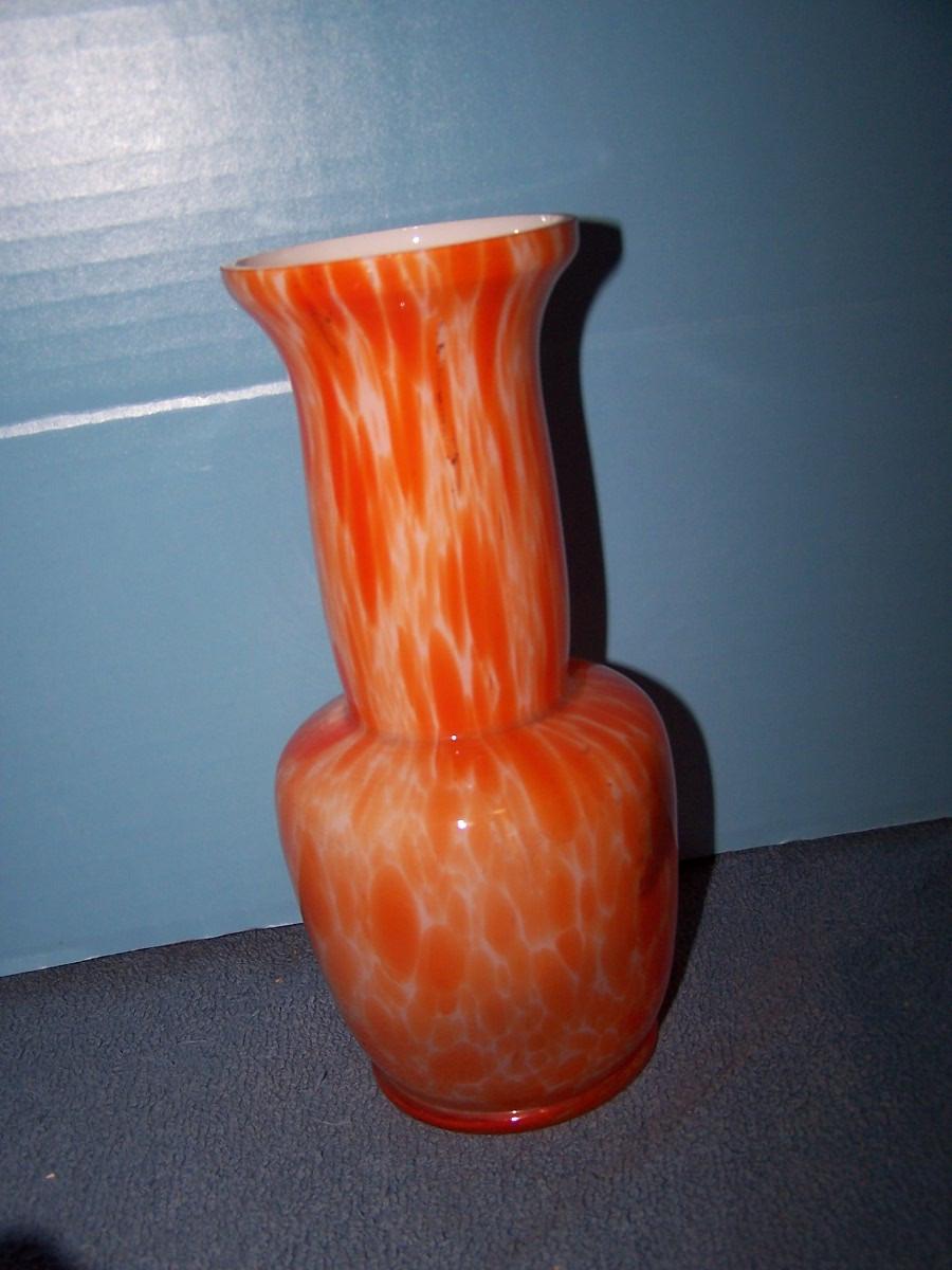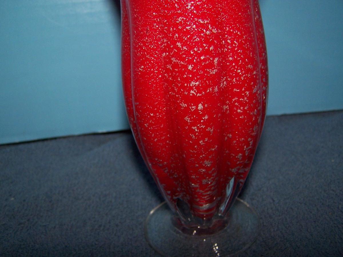 THIS IS SOME LOVELY VINTAGE MCM ART GLASS!!! UNMARKED. ORANGE-9'' TALL.. LIGHT WEAR..