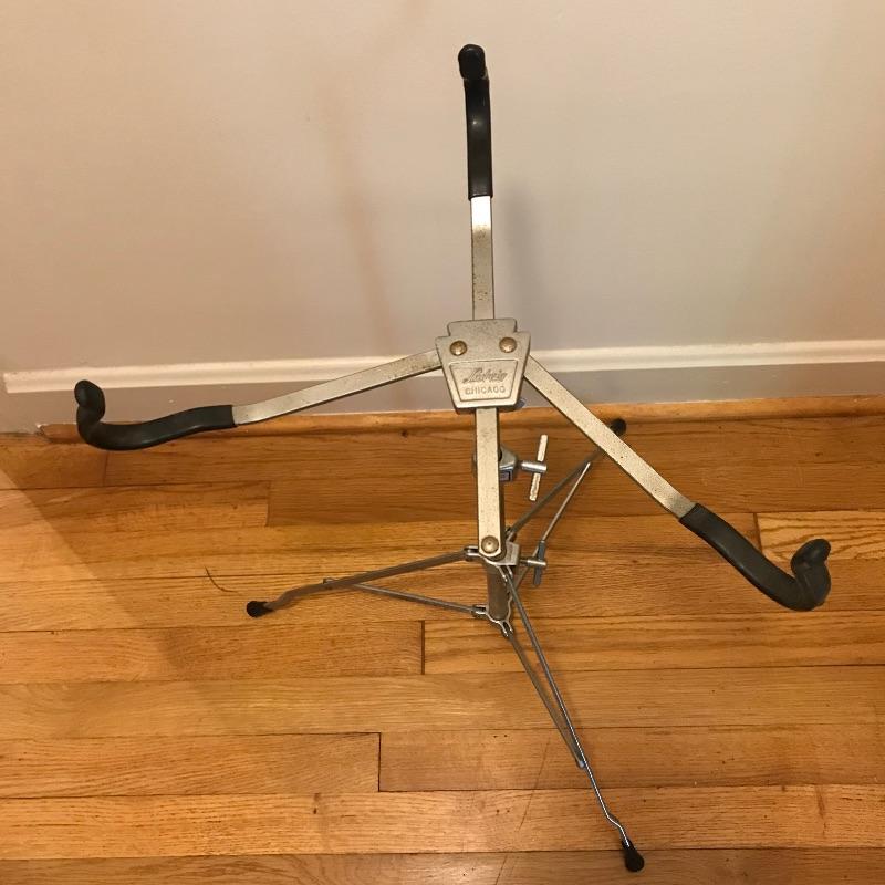 Ludwig Chicago snare drum stand. Piece stands about 30” high when fully extended. Piece also completely folds up for transport and has silicone-like covers on feet and arm basket. Item is in good condition, just waiting for a purpose in life! See photos. Shipping available.
