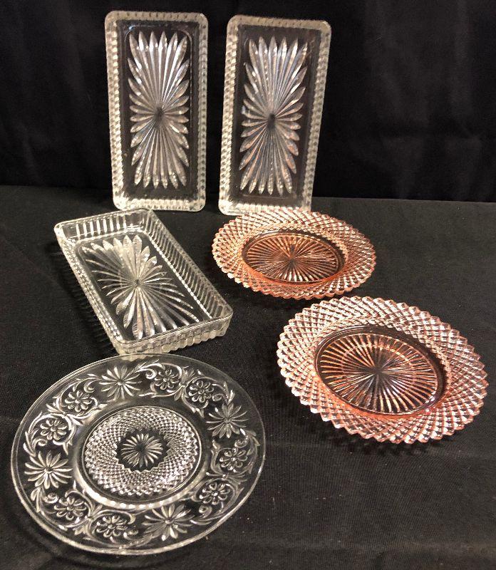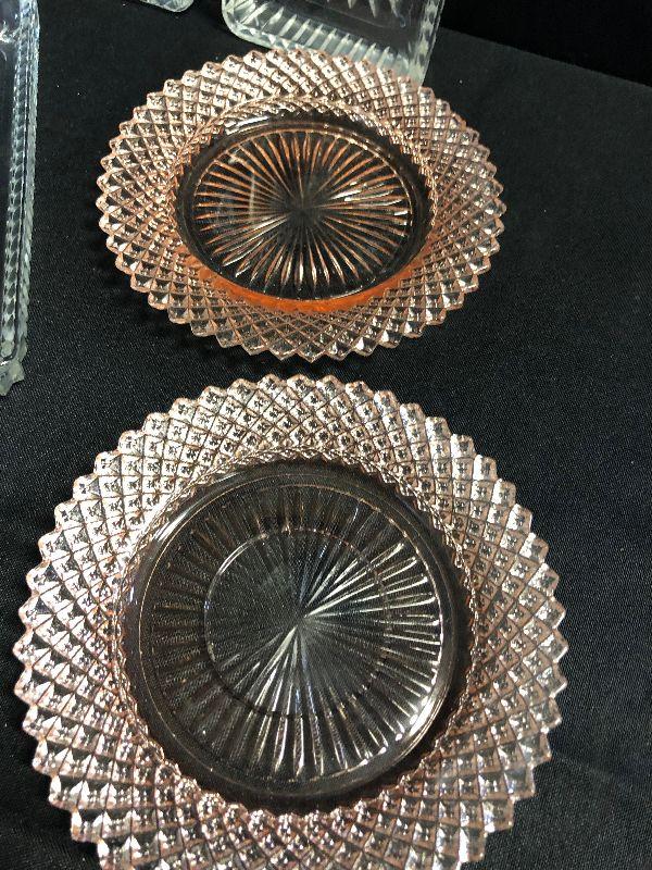 Good condition - vintage glass - no chips Pink and clear 7 x 4 on trays