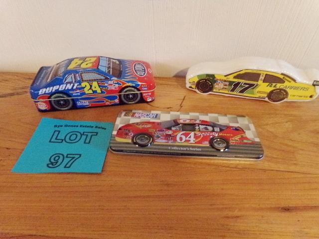 LOT 97  NASCAR TINS AND CAR THAT'S A T-SHIRT