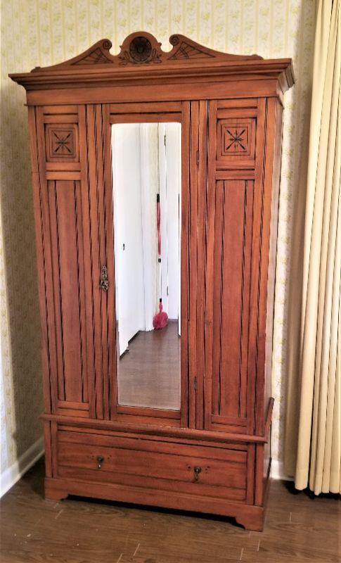 Lot #96 Nice Antique Armoire with drawer - breaks down into 3 pieces