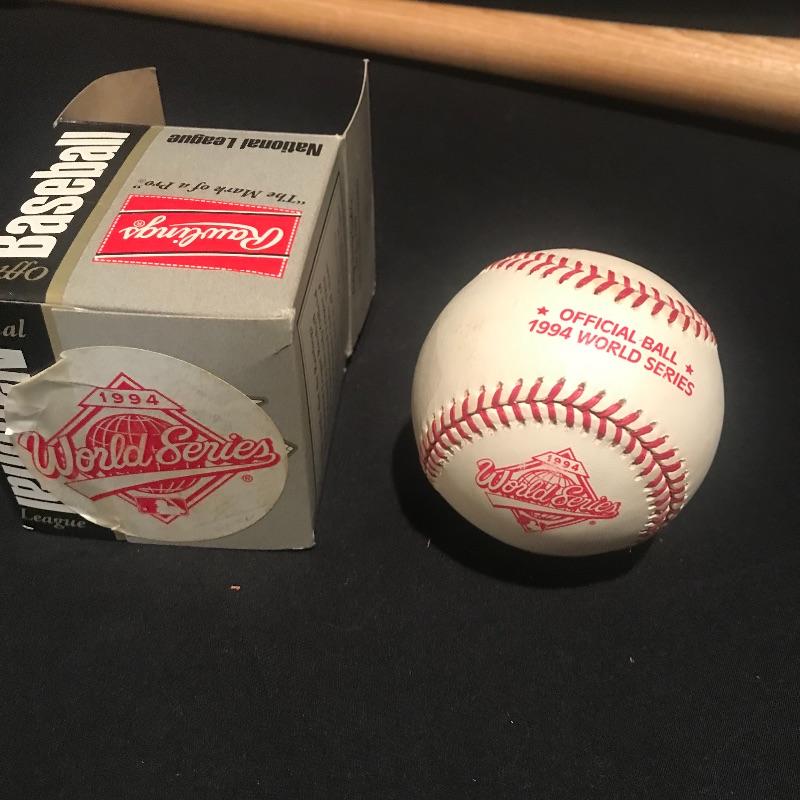 Yep! No World Series took place in 1994 due to players’ strike but Rawlings had printed a ball. The ball with it's original box is available in this lot along with a Louisville Slugger bat made especially for our client, Alex Kosma. Shipping available.