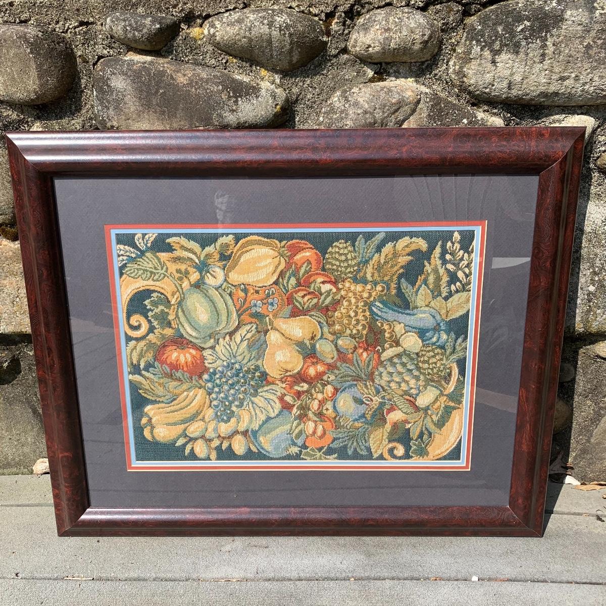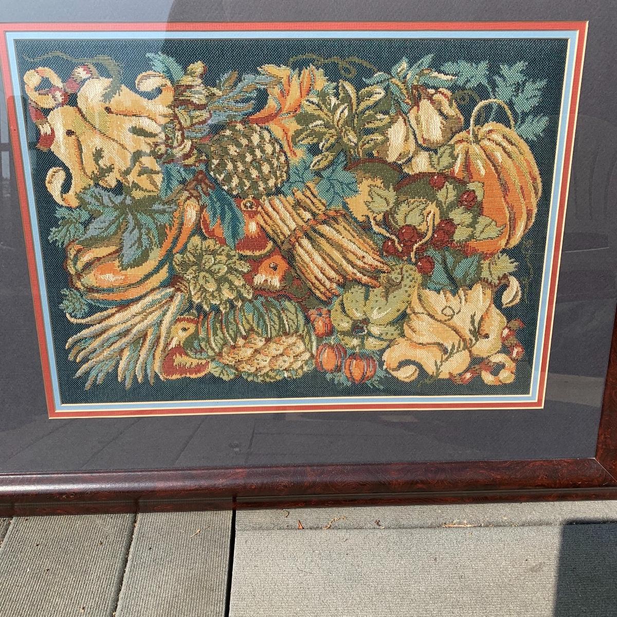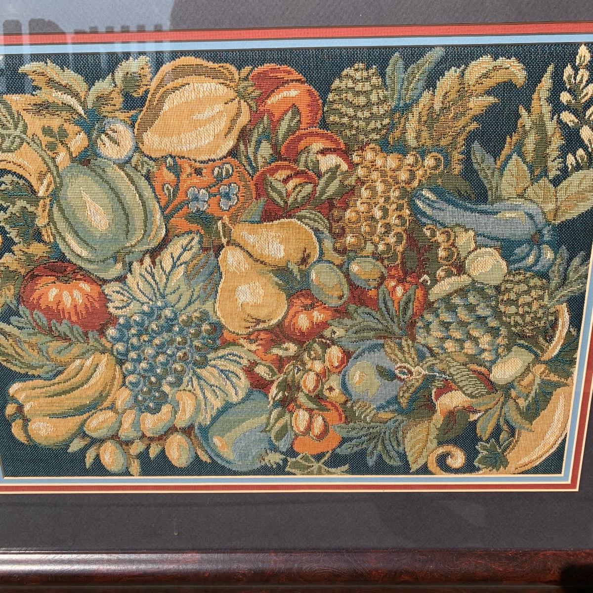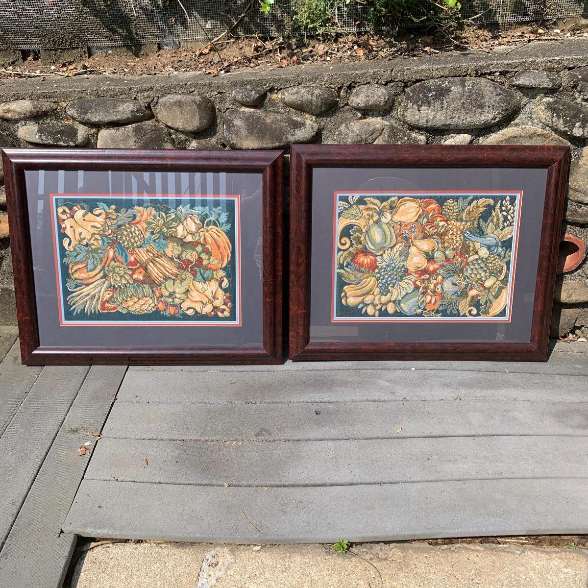 These framed tapestry’s are truly classy! Both of them are harvest themed picturing a bounty of fruits and vegetables. They are also professionally framed and matted by Clayton Hays Designes. Each piece measures 24” X 29”. Both are in great condition.