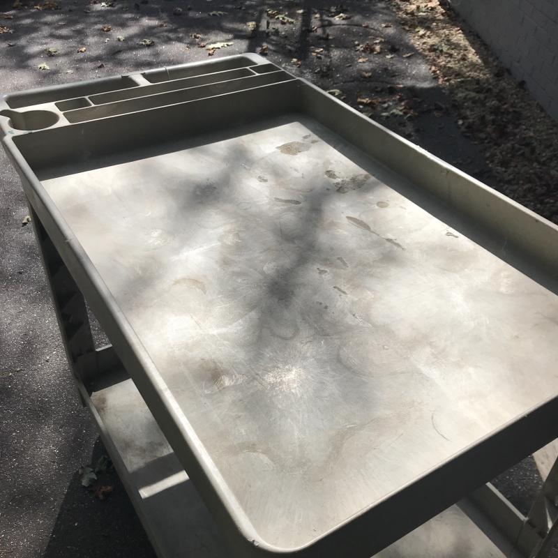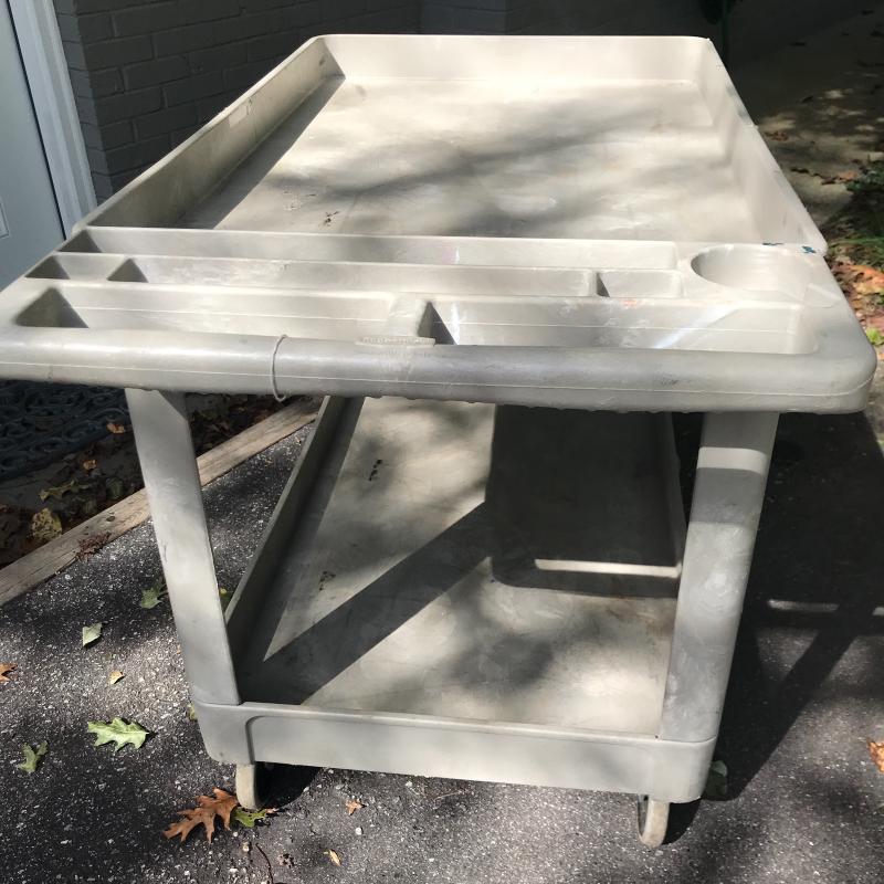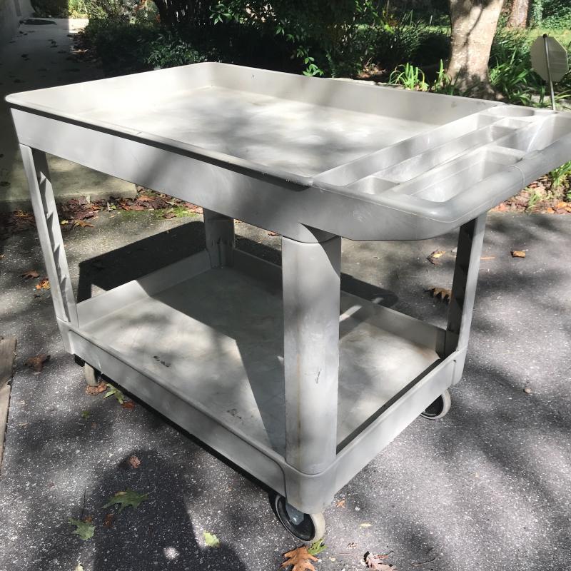 Sturdy heavy plastic rolling utility cart for any of your needs. Move items easily. Get organized. This cart can handle it all. Measures 45” x 26” x 33”. No shipping.