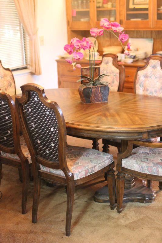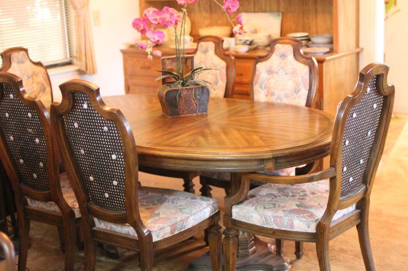 Lot 97 Vintage Wood Dining Table w/ 6 Chairs/1 Leaf 2'5"x3'5"x5'9"