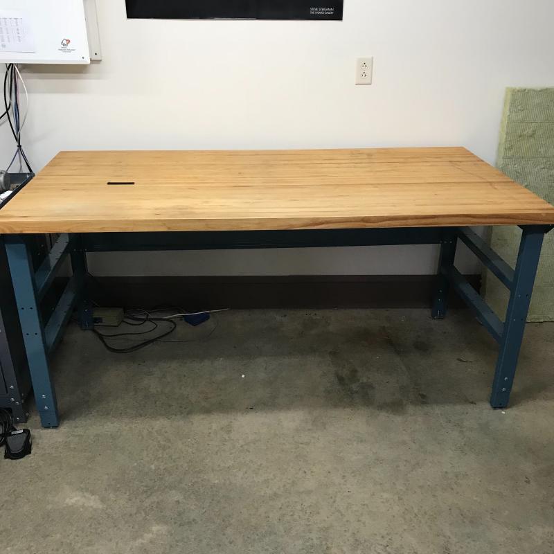 Wood top and metal adjustable legs work bench measuring 72” x36” x34”. Lot is available for local pick up in Asheville, NC and will have to be moved up a hill. It may need to be disassembled to get out the door. You will need help moving it. Lot is available for local pick up in Asheville, NC only.