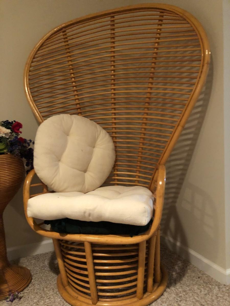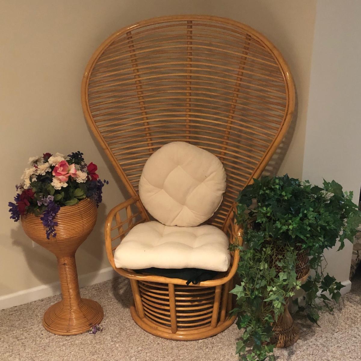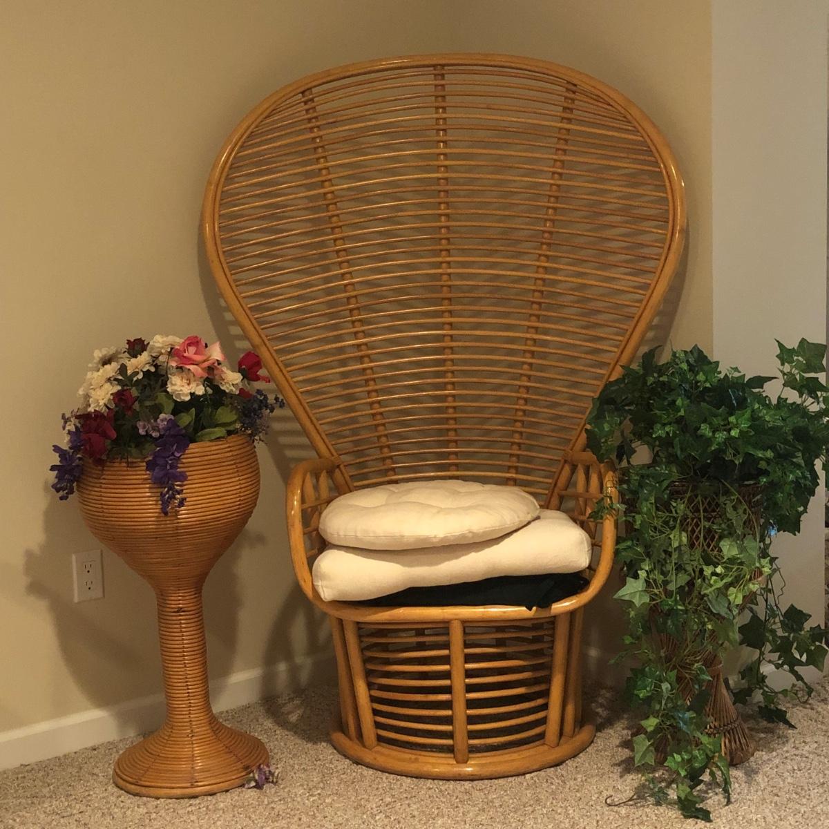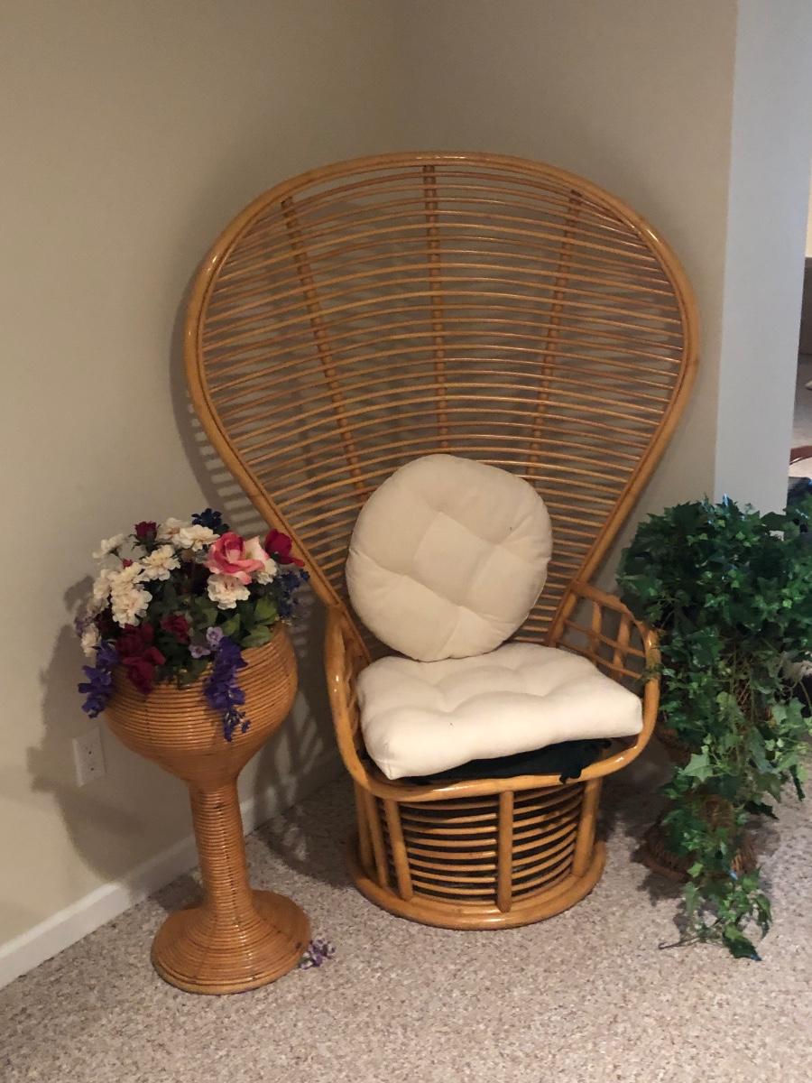 LOT 53B: Large Wicker Peacock Chair w/ Faux Plants