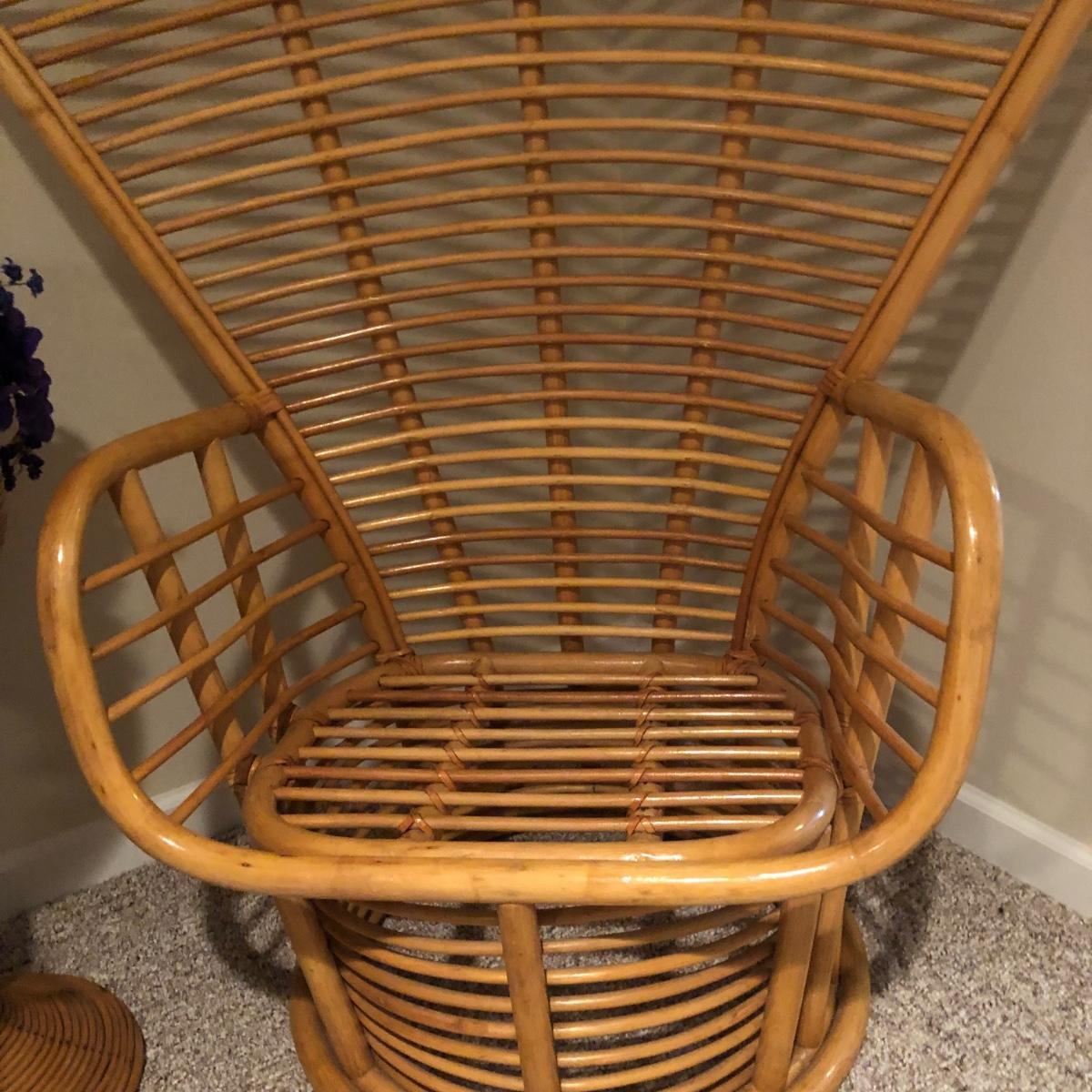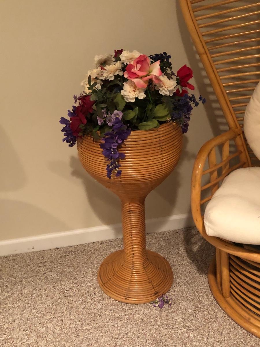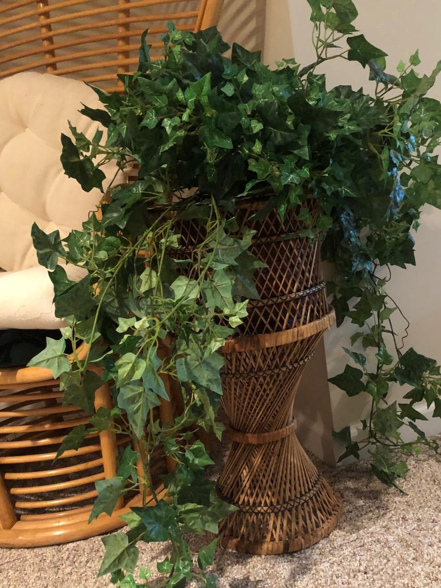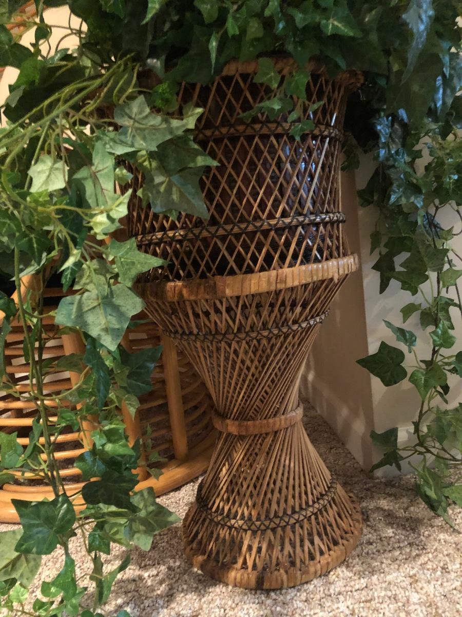 LOT 53B: Large Wicker Peacock Chair w/ Faux Plants