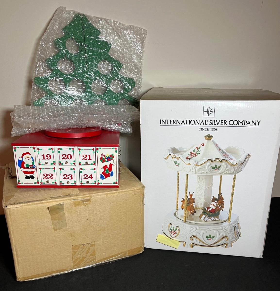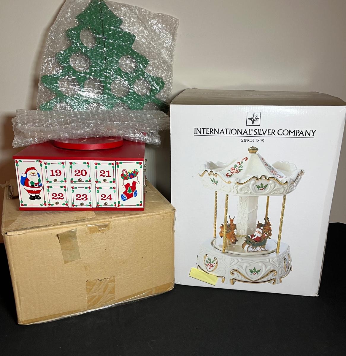 LOT 75B: International Silver Company Santa and Sleigh Musical Carousel & Musical Christmas Tree Advent Calendar
